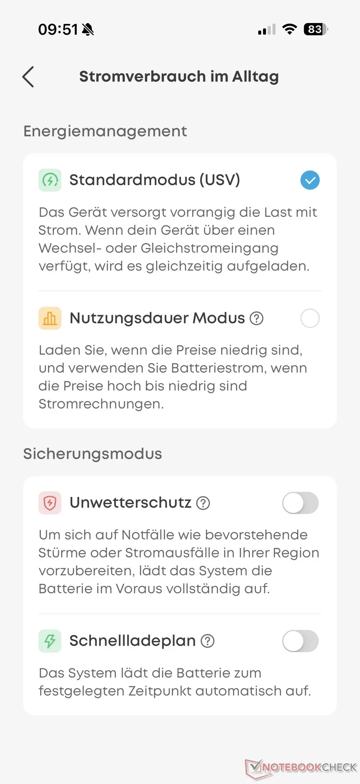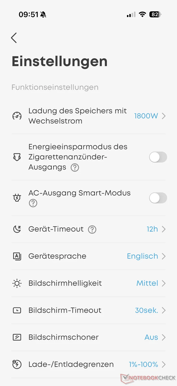 Ayrıca şarj hızı, şarj ve deşarj limitleri, enerji tasarrufu seçenekleri, ekran seçenekleri ve daha fazlasıyla ilgili çeşitli ayarlar bulunmaktadır. Yeni ekran sayesinde bazı ayarlar artık doğrudan güç istasyonu üzerinden de değiştirilebiliyor. Buna ek olarak, iki ekran mevcut performans değerleri hakkında daha ayrıntılı bilgi sağlar.