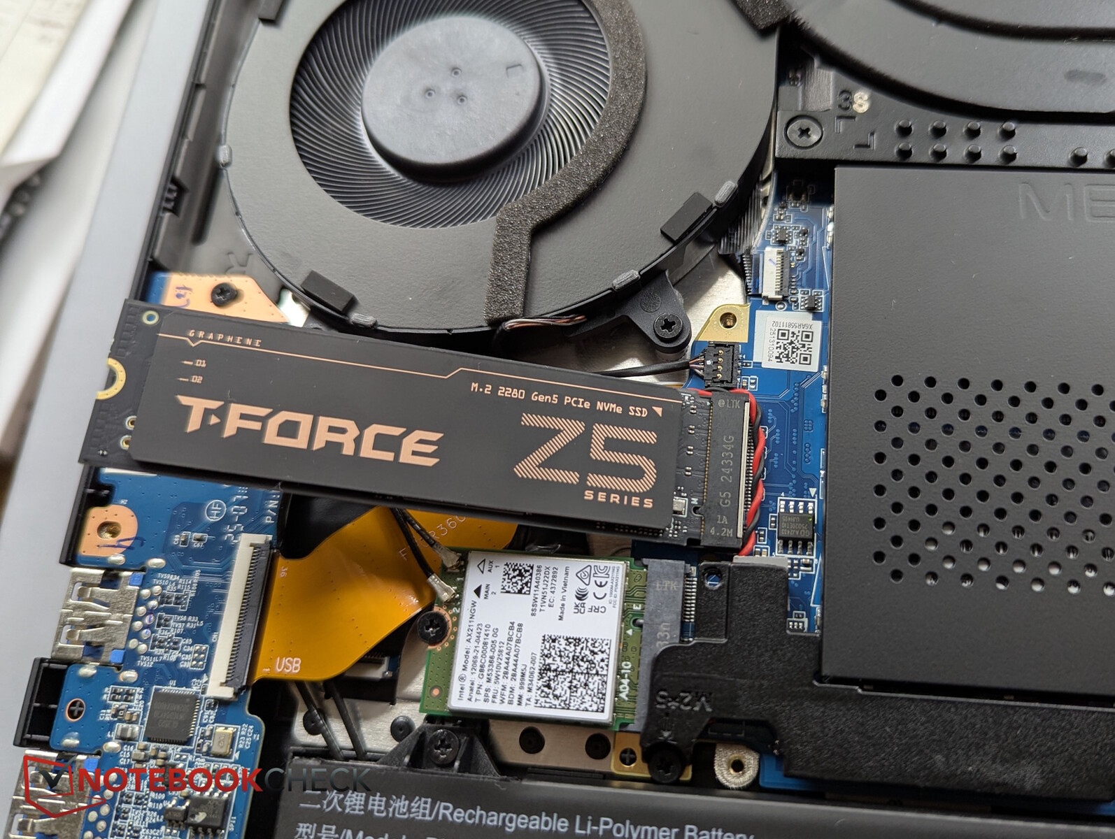 Bu yüzden dizüstü bilgisayarın ana belleğini çıkardık ve T-Force Z540'ımızı taktık. Başlangıçta, XMG'nin normalde ek bir termal ped ile kasaya bağlanan soğutma plakasını dışarıda bıraktık ve soğutma için yalnızca birlikte verilen grafen etikete güvendik.