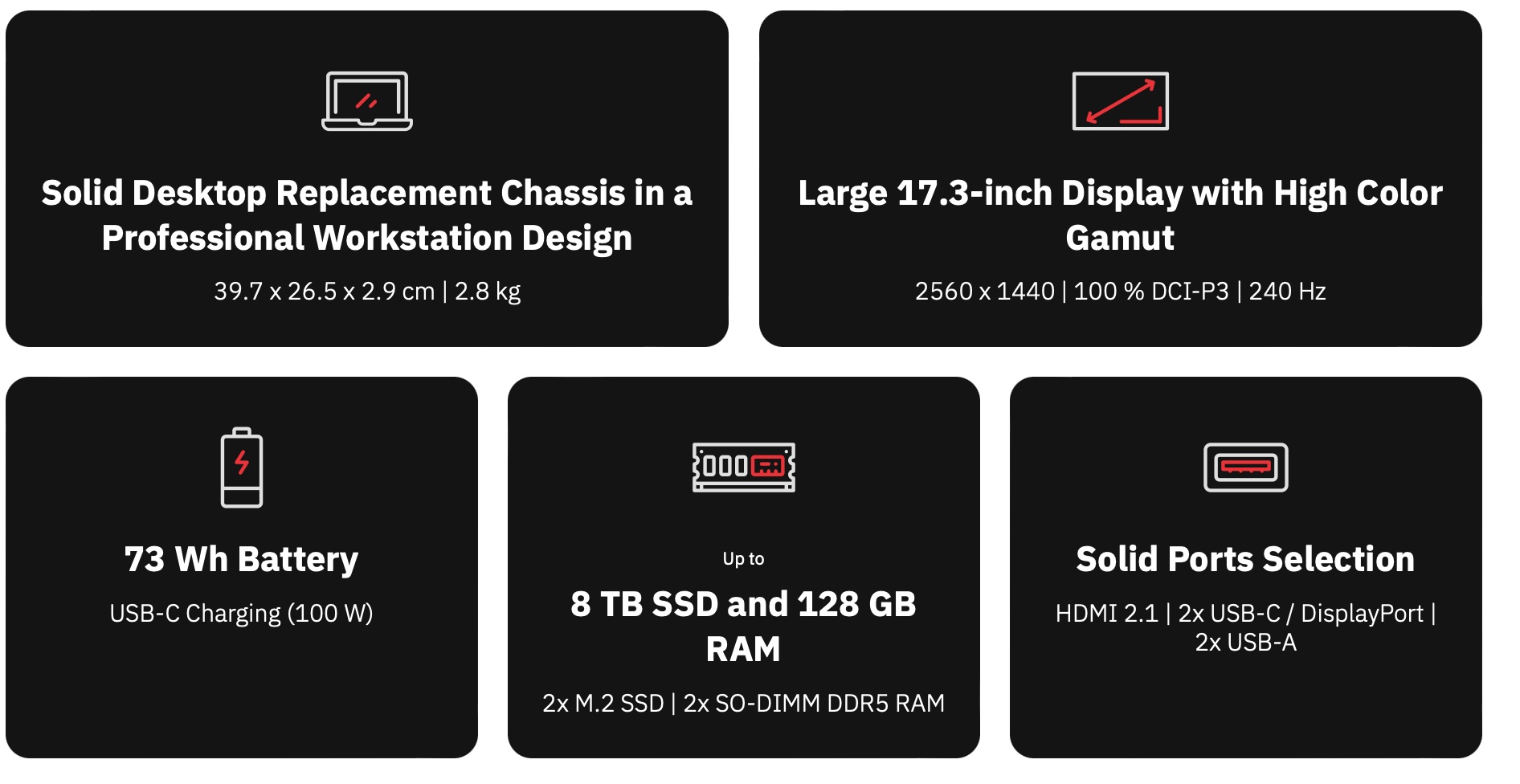 Diğer önemli özellikler arasında çift 2W hoparlör, FHD web kamerası, 73 Wh pil, Kensington kilidi ve 15 x 9 cm trackpad yer alıyor.