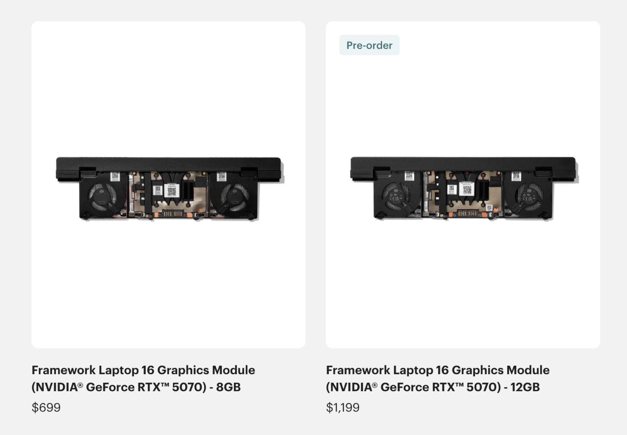 GeForce RTX 5070'in bu yeni sürümüne sahip ilk oyun dizüstü bilgisayarları önümüzdeki haftalarda sevk edilmeye başlanacak, ancak Nvidia resmi olarak fiyatı açıklamadı. Çerçeve haziran ayından itibaren teslim edilecek olan Framework Laptop 16 için GeForce RTX 5070 12 GB yükseltme modülü için ön siparişleri açtı. Fiyat şaşırtıcı derecede yüksek - GeForce RTX 5070 12 GB, 8 GB grafik belleğine sahip varyant gibi 699 $ yerine 1.199 $'a mal oluyor. Bu, müşterilerin 4 GB veya yüzde 50 daha fazla VRAM için 500 $ veya yüzde 71,5 ek ücret ödediği anlamına geliyor.