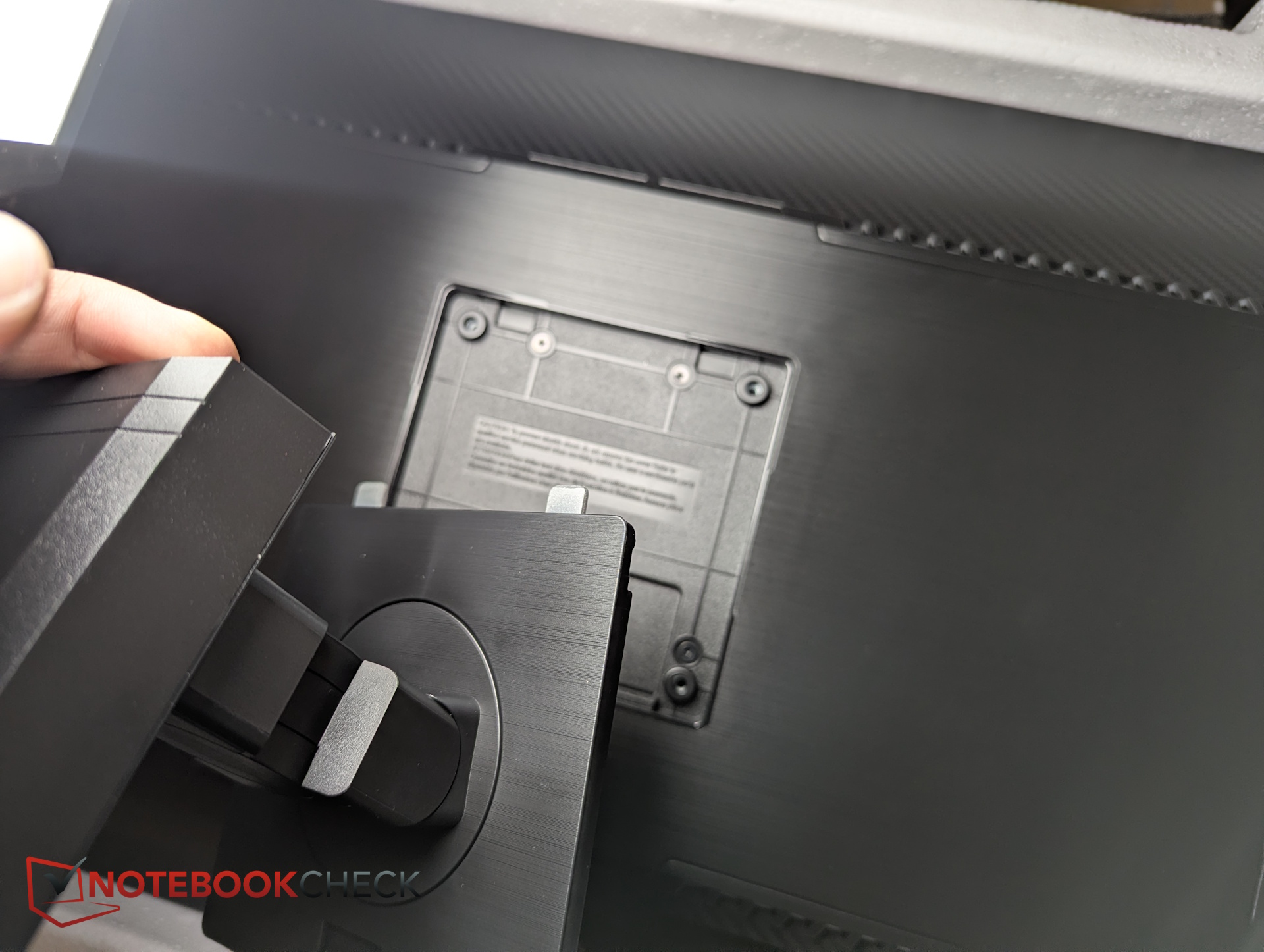 Montajı kolaydır. Stand, doğrudan ekranın arkasındaki VESA yuvasına oturur; vida gerekmez.