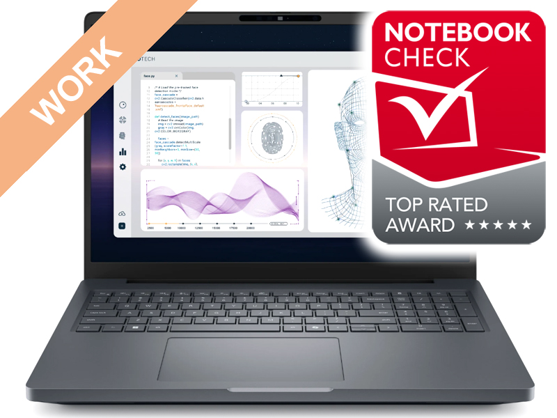 Pro Max 16 Plus (2025'in 4. çeyreğinde Notebookcheck tarafından kapsamlı olarak test edildi) Precision serisine kıyasla ileriye doğru önemli bir adımı işaret ediyor. Öne çıkan özellikler arasında 120 Hz OLED ekran, Thunderbolt 5 ve daha iyi tamir edilebilirlik için modüler USB-C bağlantı noktaları yer alıyor. Artan performansa rağmen, gövdesi nispeten kompakt kalıyor ancak biraz ısınabiliyor. Buna ek olarak, GPU 175 W potansiyelini tam olarak gerçekleştiremiyor.