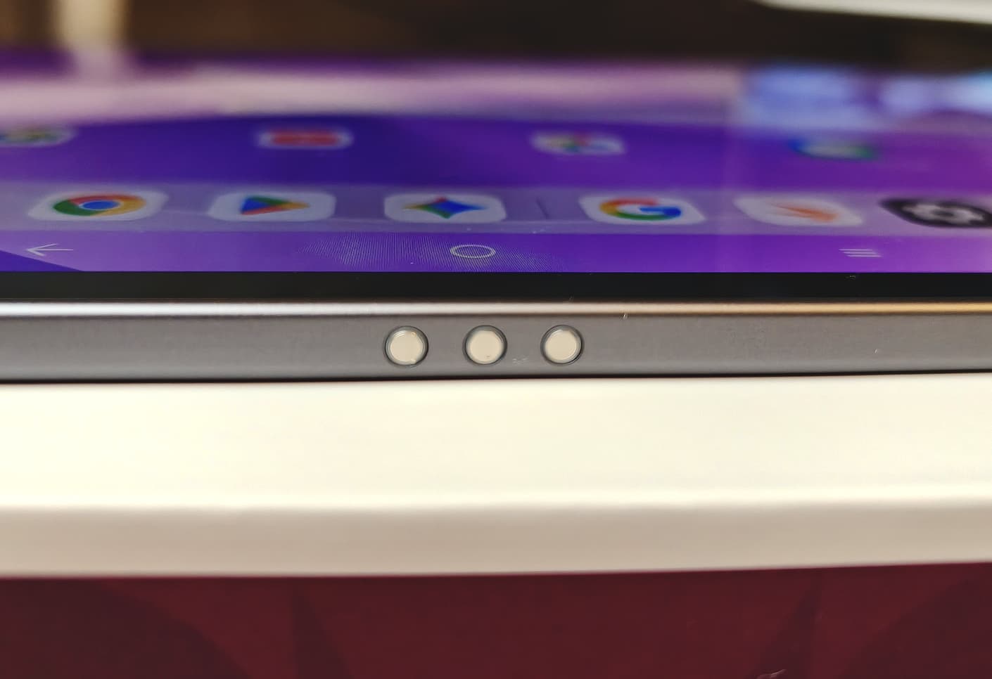 7 milimetrelik (~0,3 inç) ekran kenarları oldukça ince, ancak tablet yine de güvenilir bir şekilde tutulabiliyor ve çalıştırılabiliyor.
