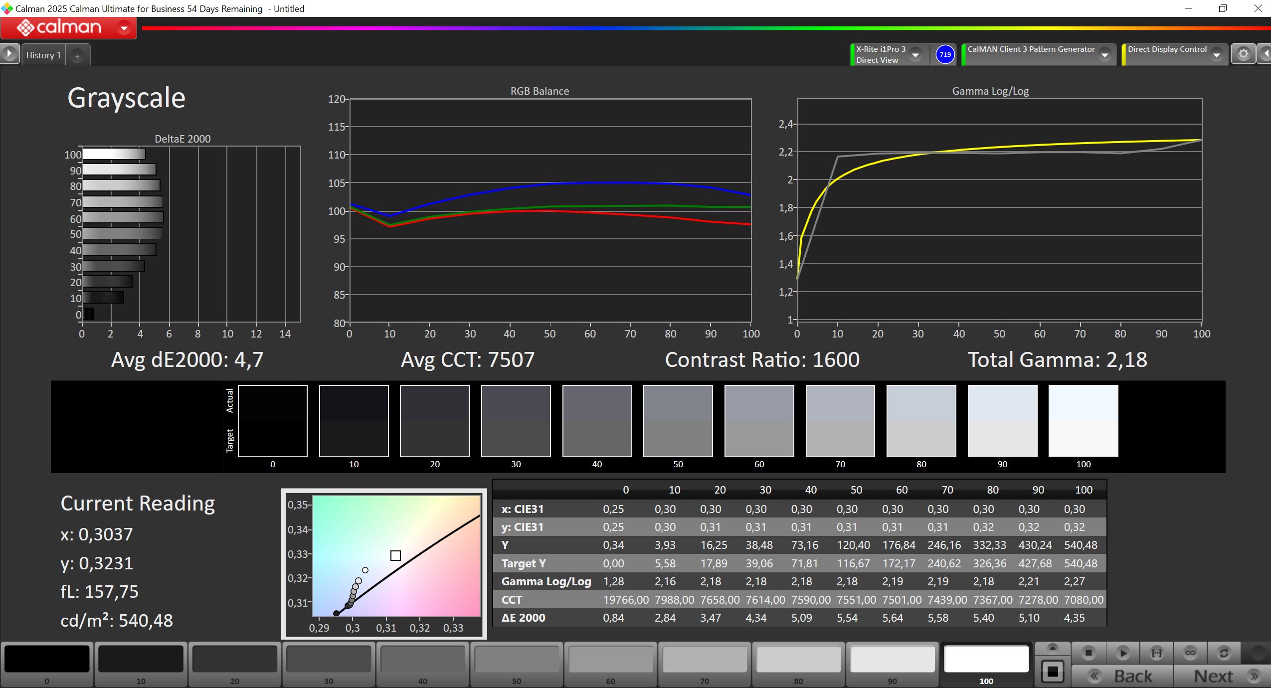 ΔE Greyscale Calman: 4.7 | ∀{0.09-98 Ø5}