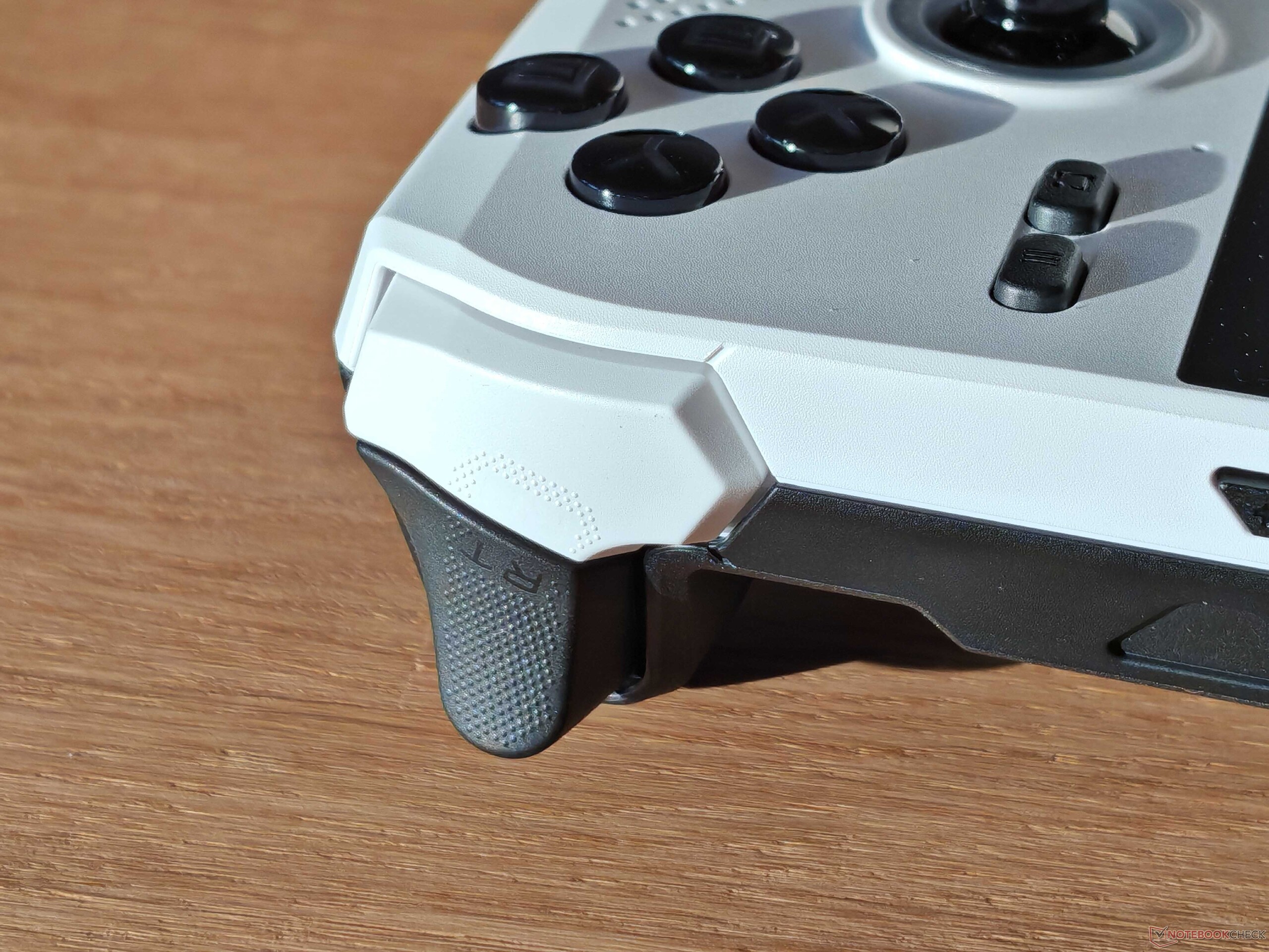 Olduğu gibi Pençe 8 AI+aMD modeli ayrıca çok hassas Hall etkili analog çubuklar ve tetikler kullanıyor. Bununla birlikte, hem omuz düğmeleri hem de tetikler Intel versiyonundan daha dar olduğu için buradaki ergonomiden tam olarak memnun değiliz. Elbette bu biraz da ellerinizin boyutuna bağlı, ancak bizim için kullanımı o kadar rahat değildi ve parmak pozisyonu doğal değildi. Omuz düğmeleri çok "tıkırtılı", oldukça yüksek sesli ve hassas. Öte yandan, ekranın yanındaki seçenek düğmeleri oldukça ucuz hissettiriyor ve aynı zamanda çok gürültülü.