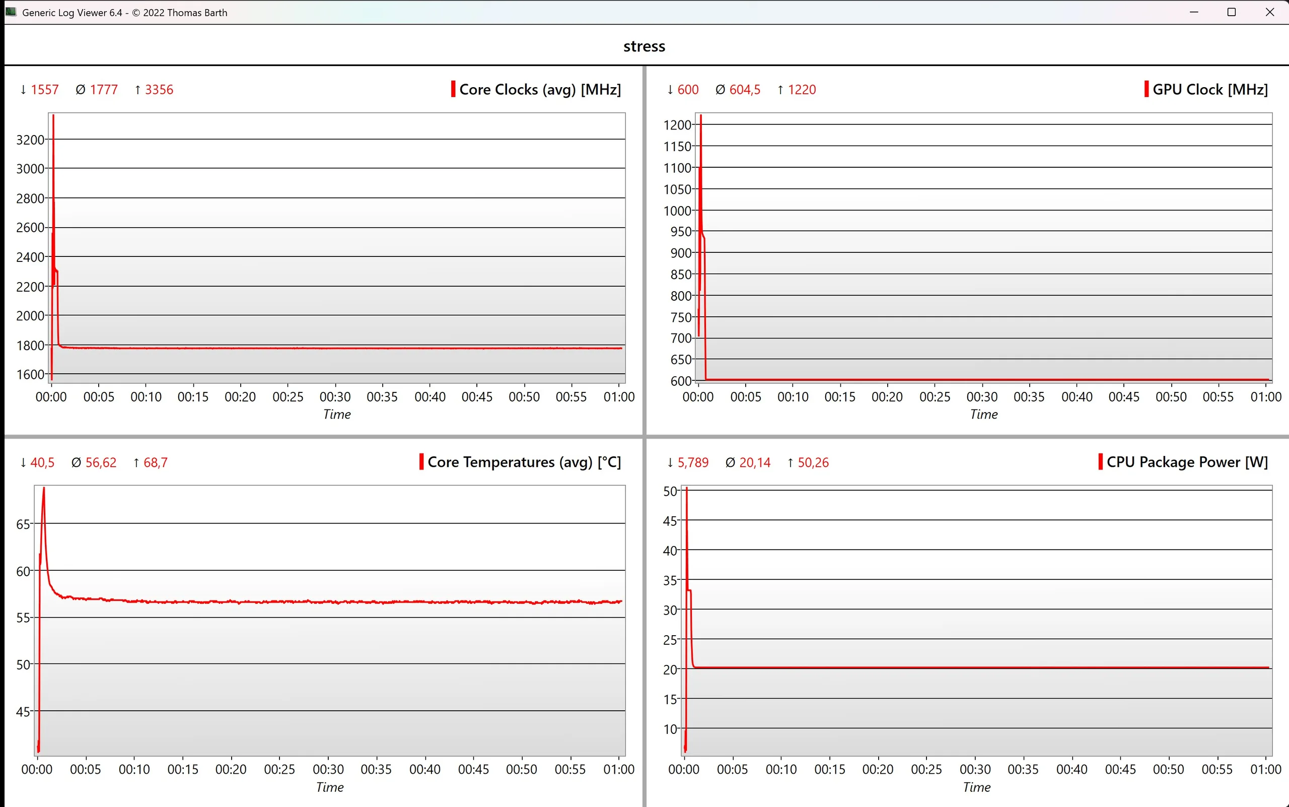 Boş modda, AMD versiyonu Intel modelinden biraz daha fazla güç gerektirir, bu nedenle Lunar Lake burada bir avantaja sahiptir. Bununla birlikte, AMD versiyonu oyun oynarken AI modunda biraz daha ekonomiktir. Maksimum 64 watt ölçüyoruz, bu da yaklaşık 49 watt'ta hızla dengeleniyor, bu nedenle 65 watt'lık güç kaynağı genel olarak yeterince boyutlandırılmış. Bununla birlikte, 2,4 watt'lık bekleme tüketimi açıkça çok yüksek.