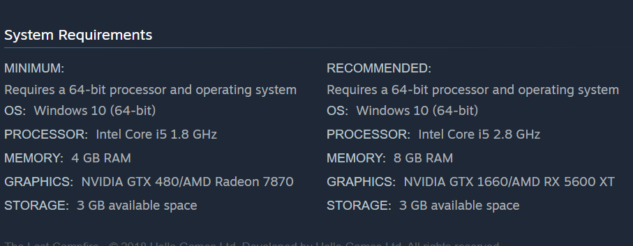 The Last Campfire sistem gereksinimleri