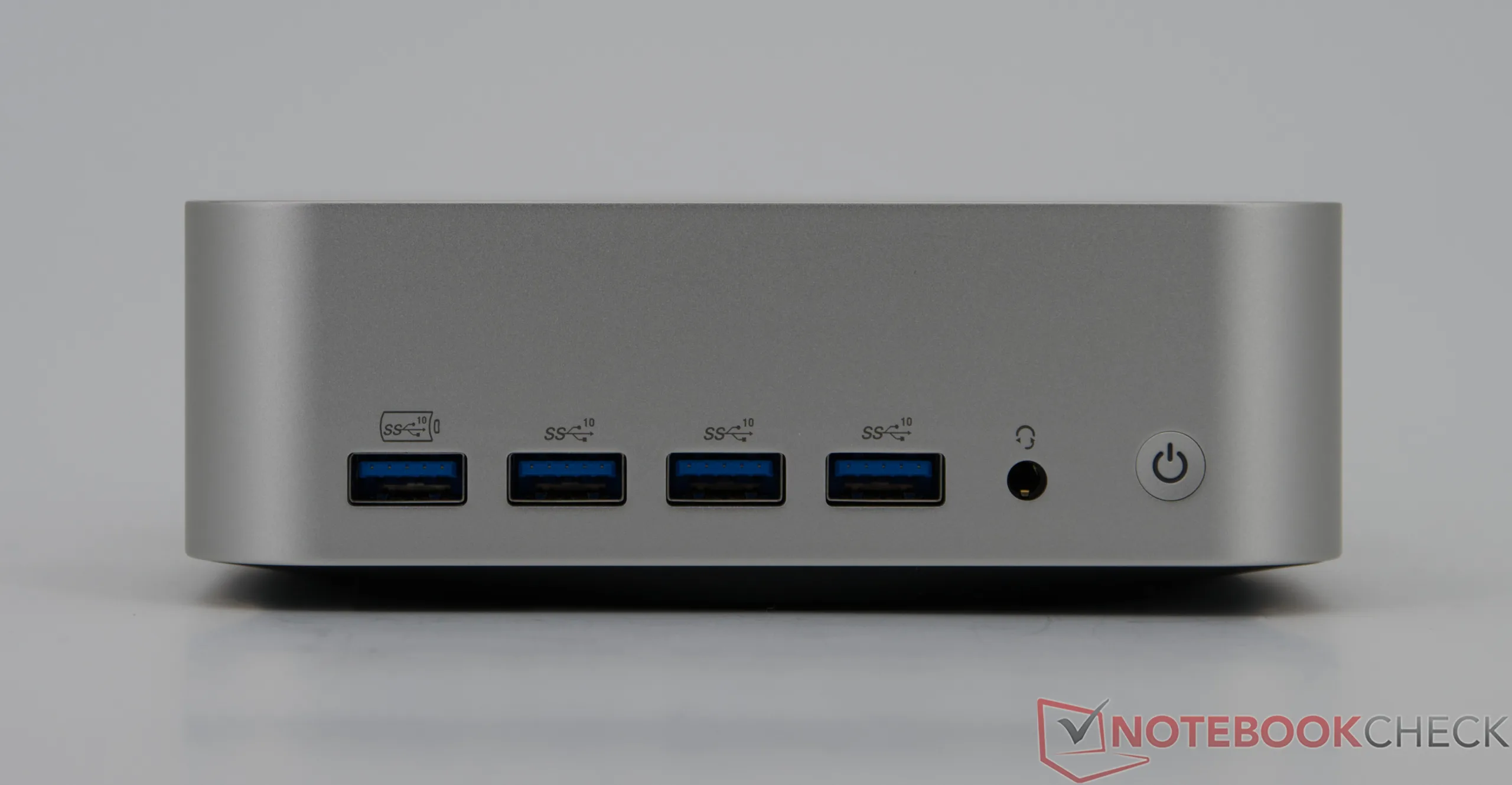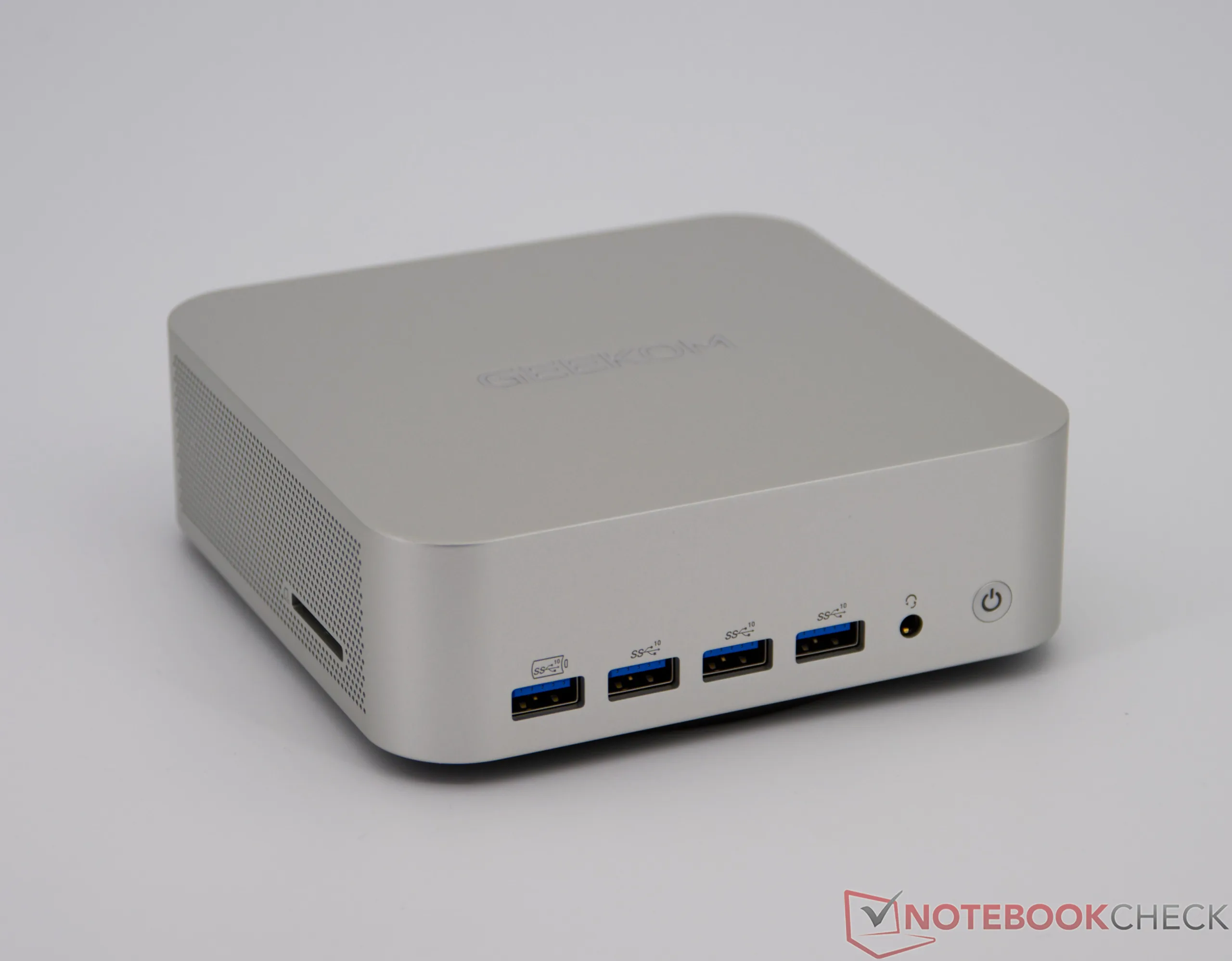 Dışarıdan bakıldığında Geekom tanıdık tasarım diline sadık kalıyor. Yüksek kaliteli alüminyum gövde kompakttır ancak yine de kapsamlı bağlantı için yeterli alan sunar. Birkaç USB bağlantı noktasına ek olarak, modern USB4 arayüzleri, HDMI çıkışları ve bir kart okuyucu mevcut olup, mini bilgisayarın mevcut kurulumlara esnek bir şekilde entegre edilmesini sağlar.