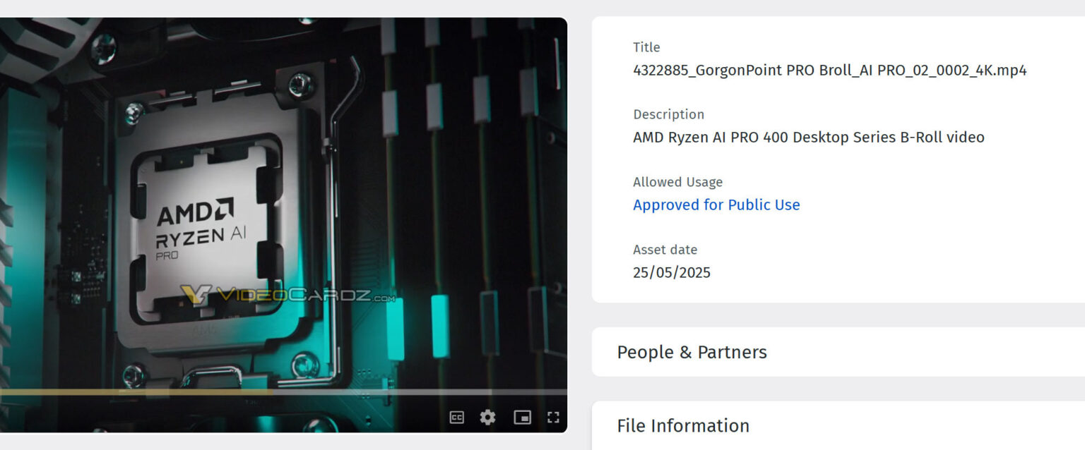 AMD'nin Gorgon Noktası dizüstü APU serisi 2026'da sadece dizüstü bilgisayarlara güç vermeyecek. Görünüşe göre AMD bunu masaüstü bilgisayarlara da getirmeyi planlıyor. Bilgiler Videocardz adresinden alınmıştır ve Moore Yasası Öldübirbirlerinden bağımsız olarak üç gün içinde bu bilgileri paylaştılar. Bir masaüstü anakart üzerinde Ryzen AI Pro çipi gibi görünen bir video klip gösteriliyor ve başlıkta bunun bir Gorgon Point SKU olduğu açıkça belirtiliyor.