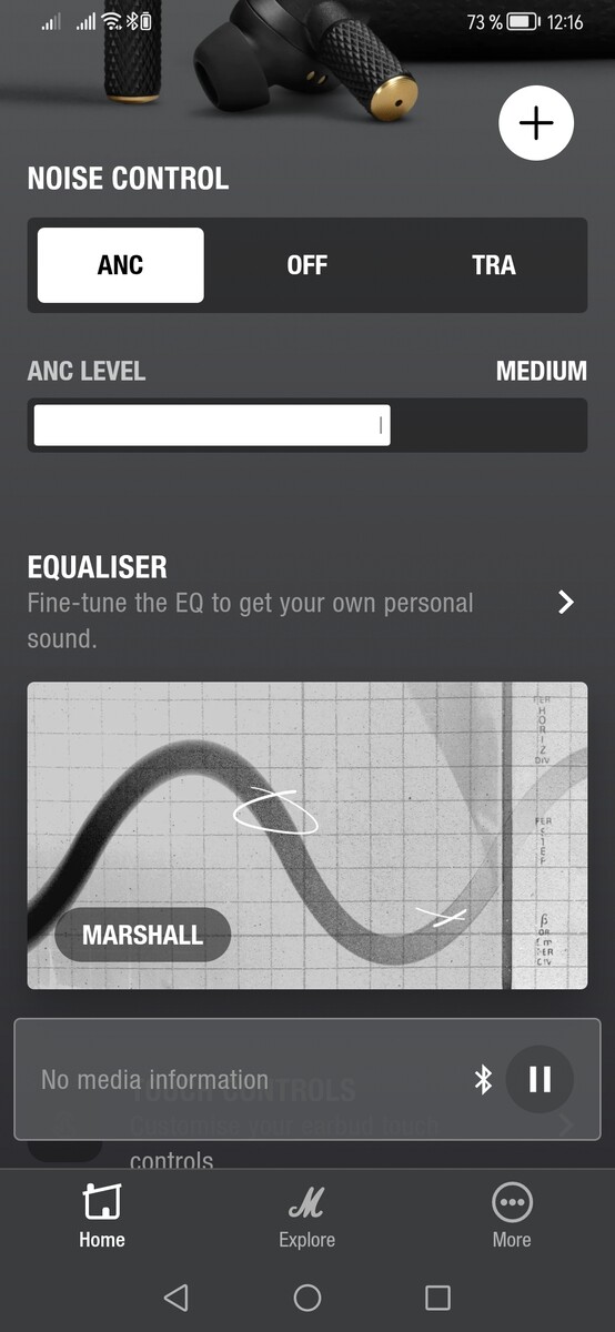 Uygulamanın kendisi çok net ve işlevsel bir şekilde yapılandırılmış. ANC ve şeffaflık modu üç adımda (Düşük, Orta, Yüksek) ayarlanabiliyor. Ayrıca, ayarlanmış Marshall sesi ve diğer çeşitli ön ayarların yanı sıra manuel ayarlamalar yapmanıza olanak tanıyan bir ekolayzıra erişebilirsiniz. Burada, en azından özel dokunma eylemlerinden birini ihtiyaçlarınıza uyacak şekilde ayarlayabilirsiniz. Sonuçta, ses seviyesini dokunmatik komutlar aracılığıyla kontrol etme seçeneğiniz var. Ne yazık ki, bunu yapmak ANC ve şeffaflık modu arasında geçiş yapabilme işlevini kaybetmeniz anlamına gelecektir. Geliştiriciler bunun yerine Spotify dokunmatik komutunu kullanmalıydılar, çünkü bu işlevden vazgeçmeyi tercih ederdik.