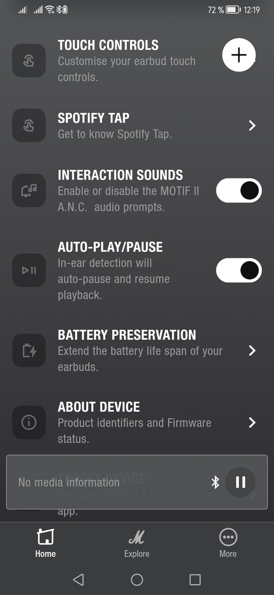 Tomurcukları takarken, eylemlerin yanlışlıkla tetiklenmesi biraz can sıkıcı; özellikle de daha uzun süre dokunarak ANC ve şeffaflık modu arasında geçiş yapmak. Motif II tomurcuklarını uzun, dokunmatik olmayan tutma yerlerini kullanarak takmak o kadar kolay değil - kaçınılmaz olarak dokunmaya duyarlı yüzeylerine yanlışlıkla dokunuyorsunuz.