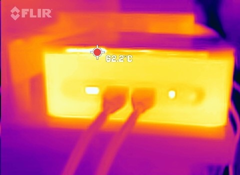 AcePC, Wizbox AI mini PC'yi, RAM ve SSD'leri havalandırmak için soğuk hava çeken düğmede daha küçük bir fanın yanı sıra 2 ısı borulu daha büyük bir soğutucu ve üst taraftaki işlemciyi soğutmak için daha büyük bir fan içeren bir soğutma sistemi ile donatıyor. Doğal olarak, en yüksek sıcaklıklar üst kapağın altında kaydedilmiştir. Üst kapağın sıcak noktası boşta 40o C'nin biraz üzerindeyken, orta yükte 41,4o C'ye ulaşıyor ve stres testi sıcaklıkları 62,2o C'ye kadar yükseltiyor. Ortalama kasa sıcaklıkları boşta 32,45o C ve stres testinde yaklaşık 34,25o C olarak ölçülüyor. Ayrıca, CPU paket sıcaklıkları boşta 50o C ve orta yükte 62o C olarak ölçülmüştür.