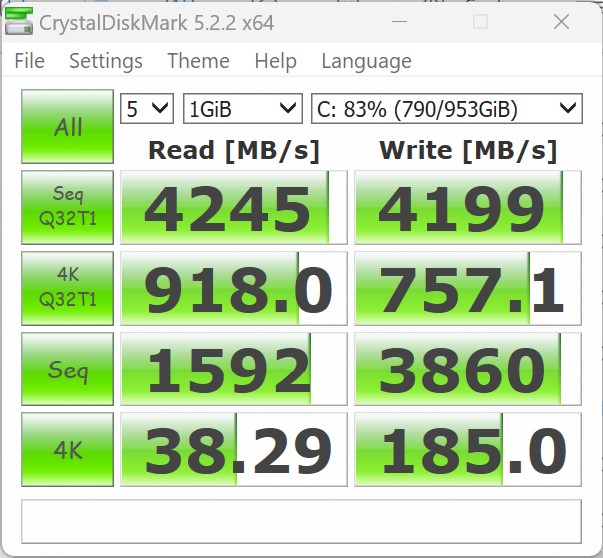 Acemagic M2A Starship, Realtek'in bir WLAN modülü ile donatılmıştır. Aynı model daha önce Acemagic Tank03. Kablosuz modül testte iyi sonuçlar verdi. Ancak, en son Wi-Fi standardını kullanmıyor. Bu da en iyi ihtimalle sadece 5 GHz frekans bandıyla idare etmeniz gerektiği anlamına geliyor. Tüm Wi-Fi testleri Asus ROG Rapture GT-AXE11000 test yönlendiricimiz ile gerçekleştirilmiştir. Kablolu ağ bağlantıları için Acemagic M2A Starship, her biri 2,5 Gbit/s'ye kadar hız sağlayan iki RJ45 arayüzü sunar.