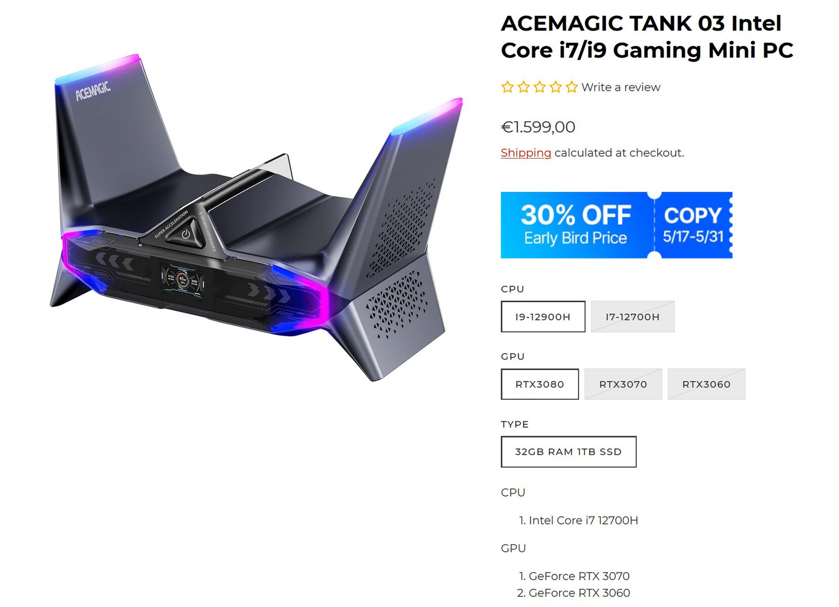 Kullanıcılar Acemagic M2A Starship'i Amazon üzerinden sipariş edebilirler. Aksi takdirde, fütüristik görünümlü bilgisayar doğrudan üreticiden satın alınabilir