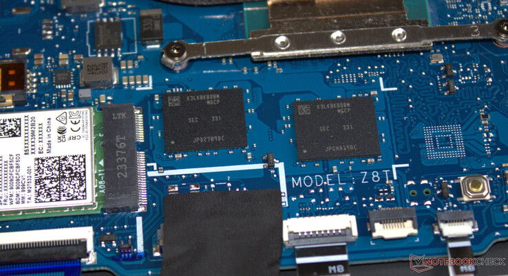 Dizüstü bilgisayar iki USB-A (USB 3.2 Gen 1) ve bir USB-C (USB 3.2 Gen 2) bağlantı noktasıyla geliyor. İkincisi Güç Dağıtımı'nı destekler ve bir DisplayPort sinyali çıkışı sağlayabilir. Toplamda, dizüstü bilgisayarın iki video çıkışı vardır (1x HDMI, 1x DP). Bellek kartı okuyucusu yok. Web kamerası (0,9 MP, maks. 1.280 x 720 piksel, gizlilik deklanşörü olmadan) standart ücret sunar.