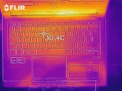 The slim laptop does not get excessively hot, either. During our stress test, we recorded temperatures exceeding 40 °C at three measuring points on the underside of the device. By contrast, the whole device remains below that 40 °C threshold when playing The Witcher 3 for at least an hour at 1080p and maximum graphics settings. Surface temperatures barely exceed 25 °C when the Swift 3 is idling, too.