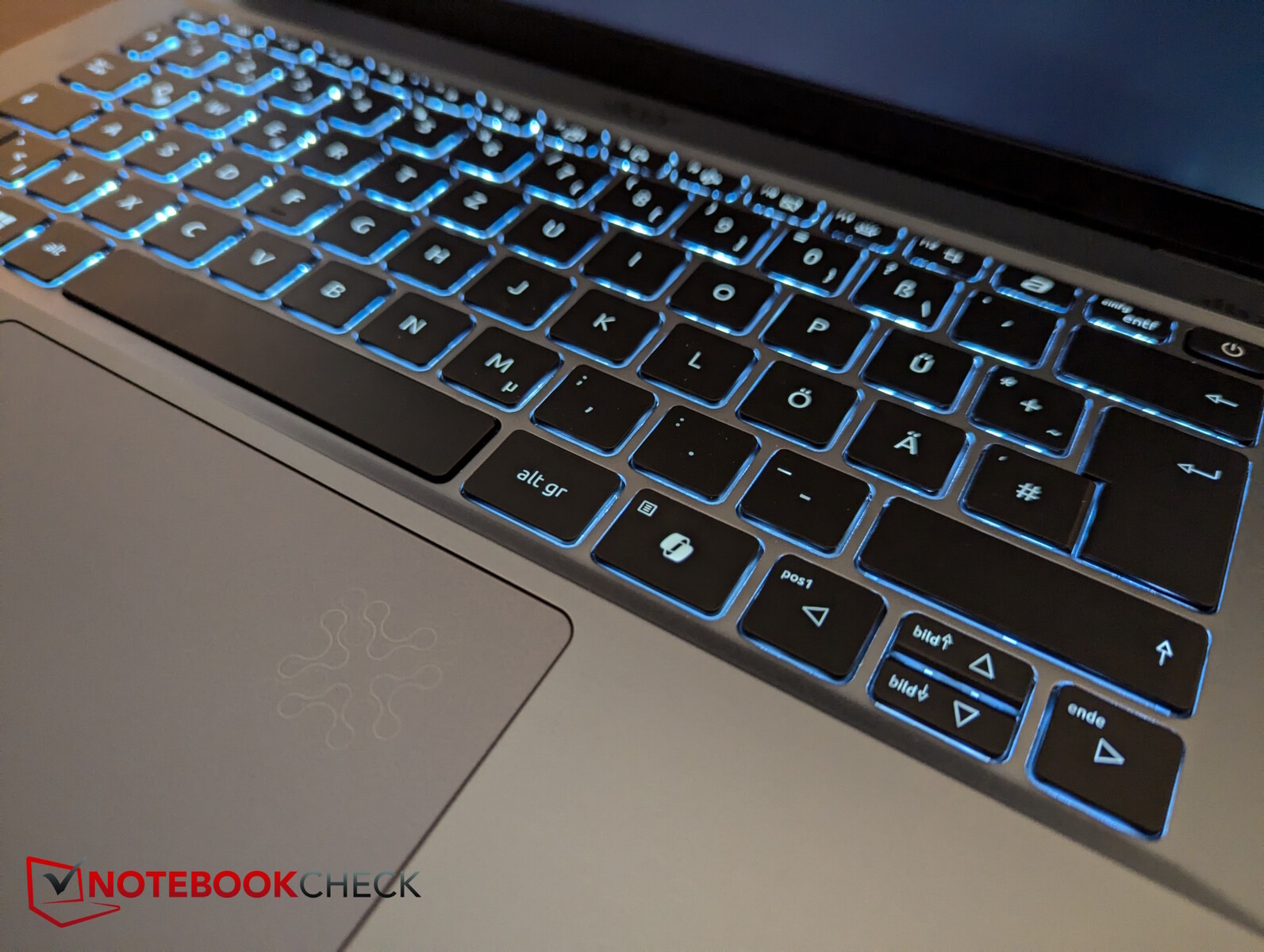 Klavye düzeni aynı kalmıştır ve tek renkli arka aydınlatma hala iki parlaklık seviyesinde mevcuttur. Oldukça kısa hareket mesafesine sahip tuşlar bulduk, ancak yine de biraz daha net olabilecek iyi bir geri bildirim var. Genel olarak, üzerinde yazmak iyi ve hızlı, ancak daha iyi modeller de var. Yazma gürültüsü orta ila orta derecede yüksek.