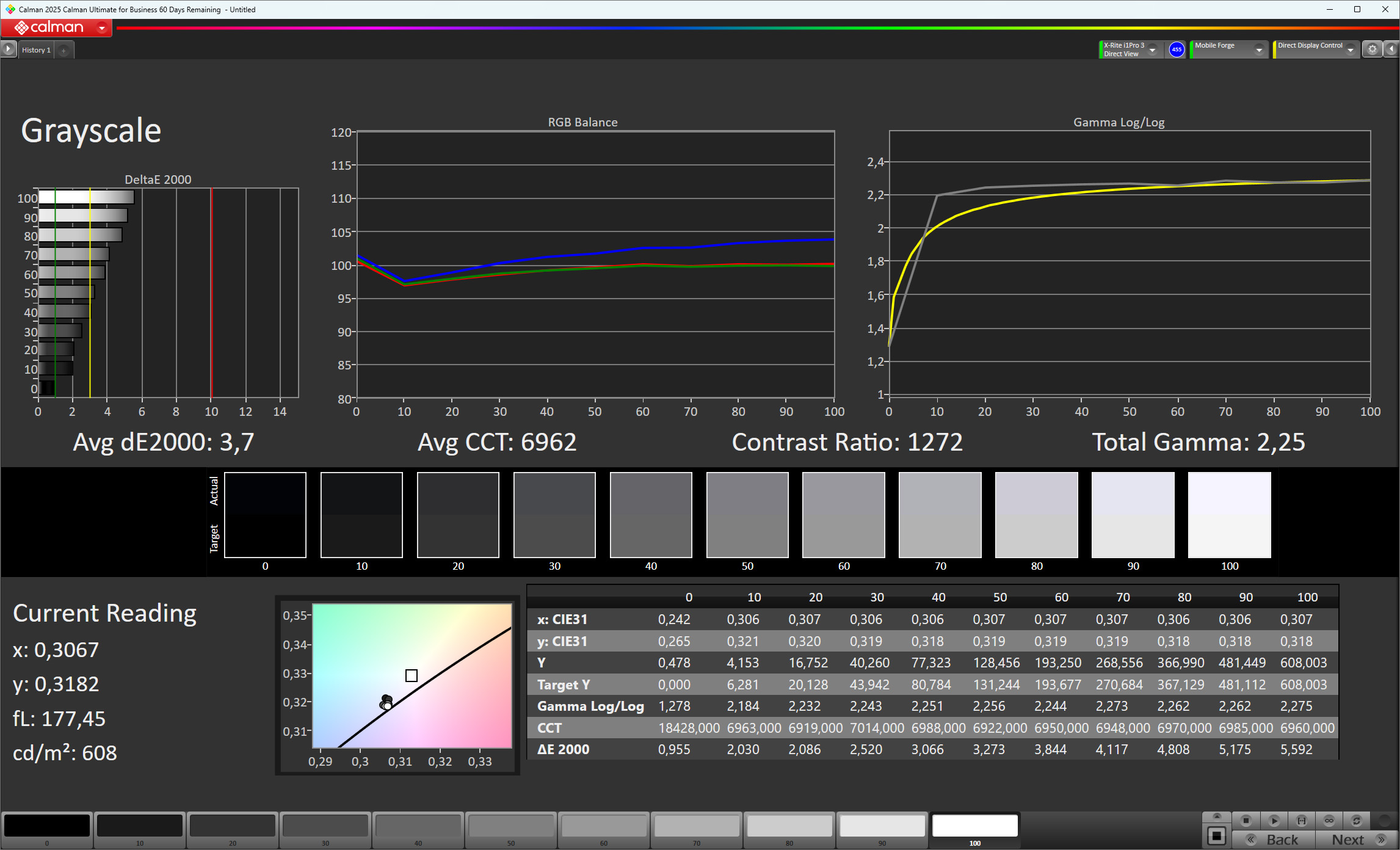 ΔE Greyscale Calman: 3.7 | ∀{0.09-98 Ø5}