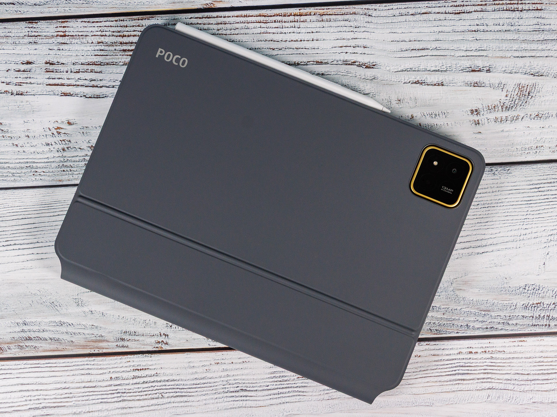 Xiaomi Poco Pad X1 mavi ve gri renklerde geliyor ve 6,45 mm ölçmemize rağmen sadece 6,18 mm kalınlığında. Kamera 3,2 mm çıkıntı yapıyor, bu da tabletin bir masaya yerleştirildiğinde sallanmasına neden olabilir. İsteğe bağlı bir kılıf bunu düzeltebilir.