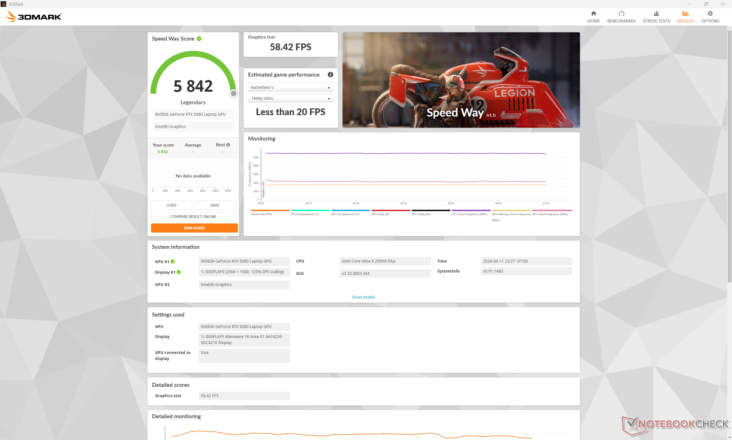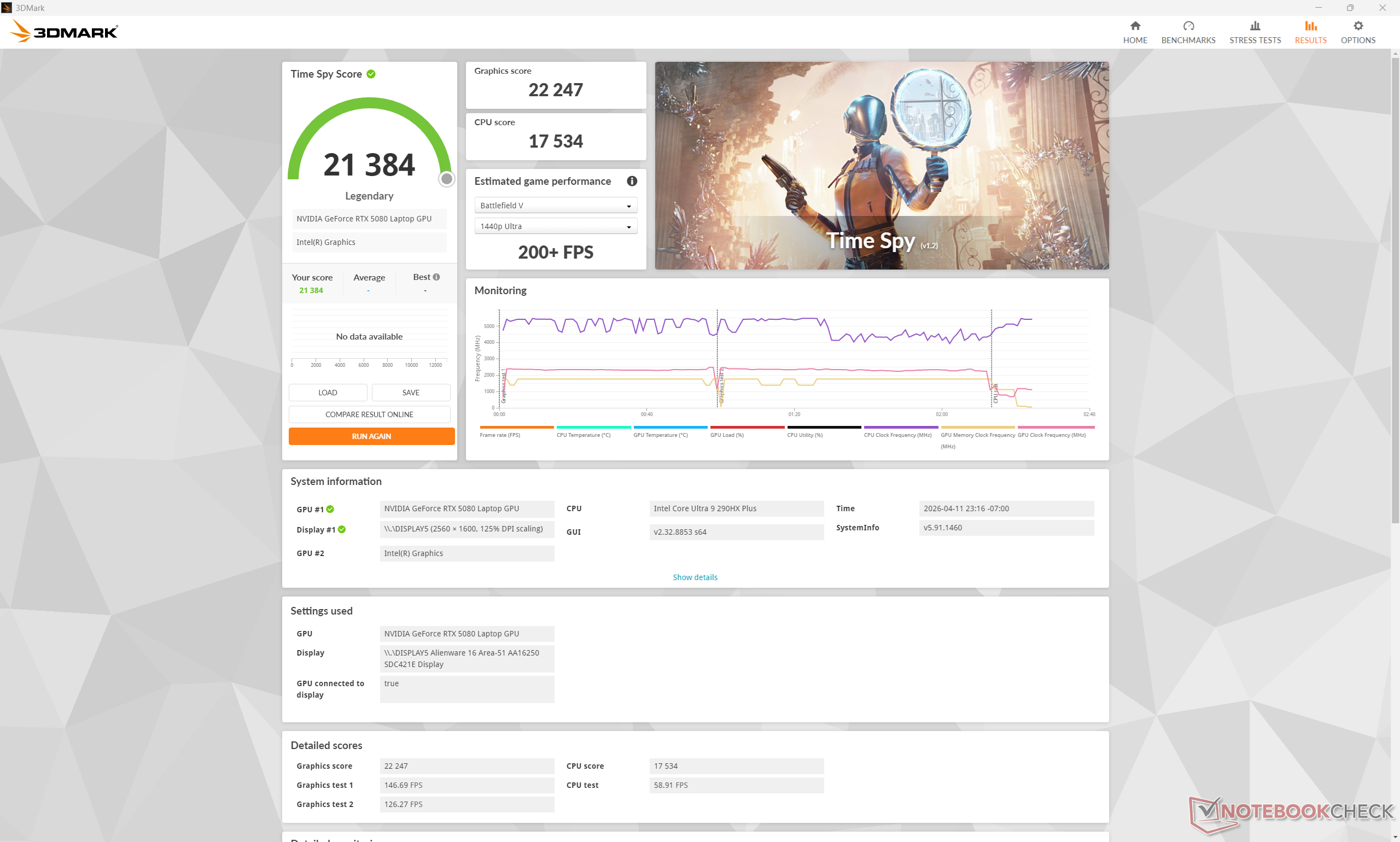 Şasi değişmediği için, çoğu 2025 modeli ile ilgili şikayetler 2026 modeli için aynı kalmaktadır. Zaten sıcak olan çekirdek sıcaklıkları bu sefer Core Ultra 9 Plus ile yapılandırıldığında 100 C'ye kadar çıkarak daha da kötüleşiyor. Bu arada, pil ömrü bir oyun dizüstü bilgisayarı için bile hala oldukça kısa. "Ne pahasına olursa olsun performans" zihniyeti, Alienware markasının bilinen özelliklerine uygun olarak her zamanki gibi güçlü.
