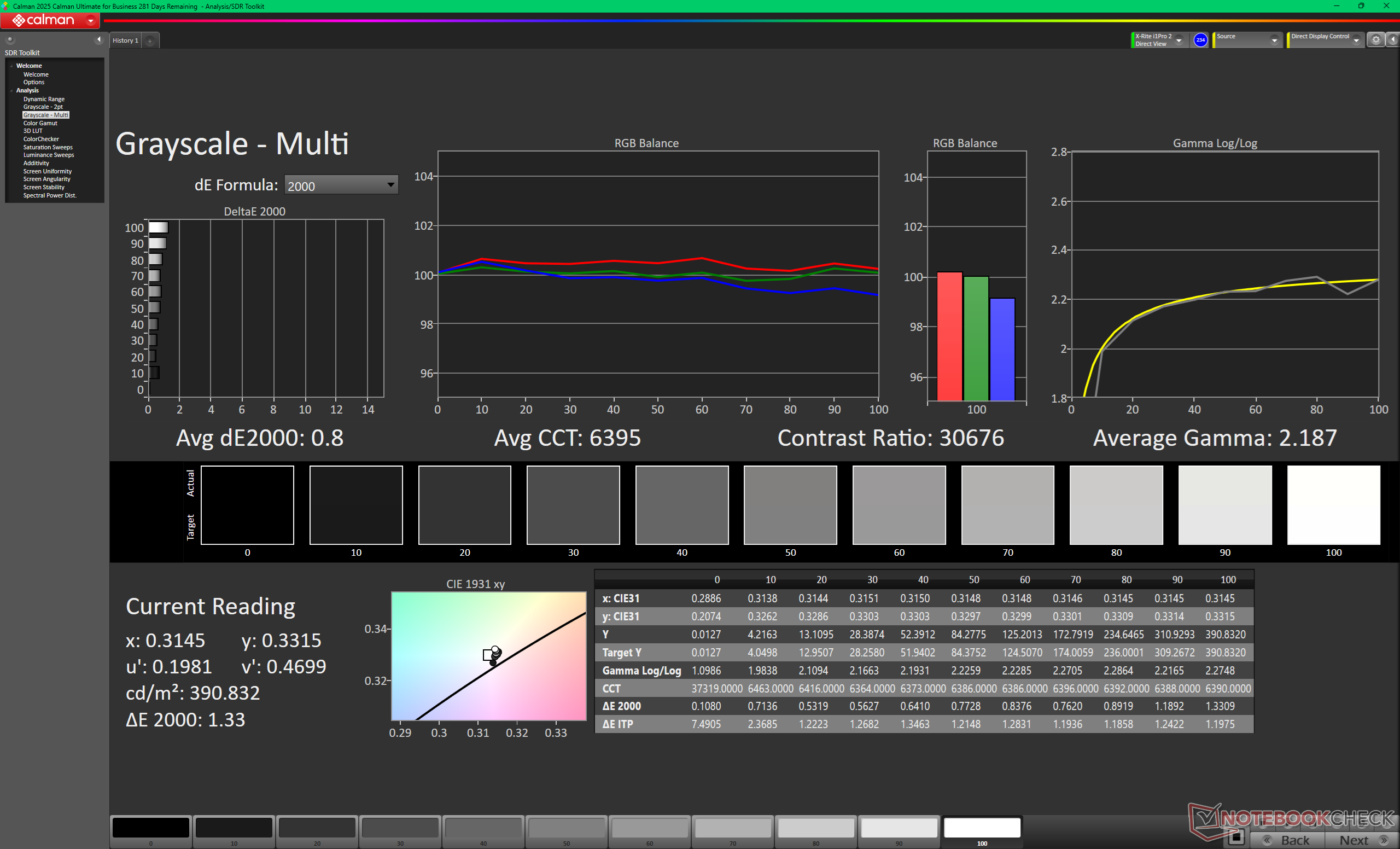 Ekran, ortalama deltaE değerleri 2'nin çok altında olacak şekilde kutudan iyi kalibre edilmiş olarak çıkar. Son kullanıcı kalibrasyonu çoğu kişi için gerekli olmayacaktır.