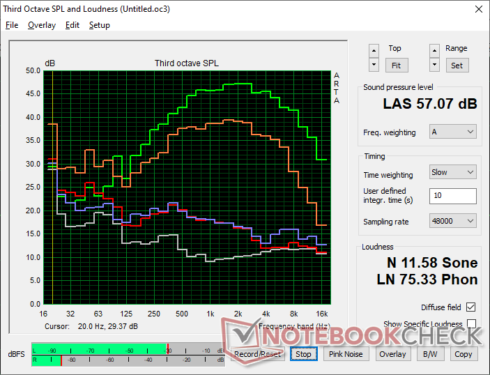 Oyun oynarken sıcak noktalar düşük 40 C aralığına ulaşır ki bu da 2025 Alienware 16 Area-51'de gözlemlediğimize benzer. Ortalama sıcaklık, yarışmaya göre biraz daha sıcaktır Lenovo Legion Pro 7i 16 Gen 10 çünkü Alienware'in avuç içi dayanakları o kadar serin kalmıyor.