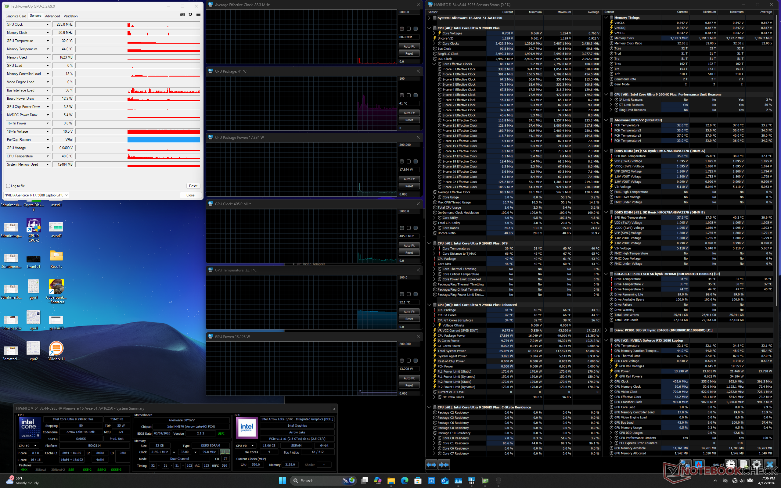 Core Ultra 9 290HX Plus, yukarıda bahsedildiği gibi önceki Core Ultra 9 275HX'ten yüzde 15 ila 25 daha hızlıdır. Tesadüfi olmayan bir şekilde, 2026 Alienware 16 modelimiz, CPU zorlandığında 2025 Alienware 16 modelinden yüzde 15 ila 25 daha fazla talepkar oluyor. En yeni Alienware modelinde Prime95'i çalıştırmak, Turbo Boost en etkili olduğunda yaklaşık 255 W veya Turbo Boost platoya çıktığında 230 W tüketirken, geçen yılın modelinde yalnızca 200 W tüketiyordu. Oyun oynamadığında bile, yeni model genellikle en az birkaç watt daha fazla talep ediyor.