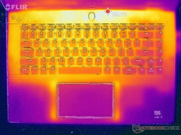 Oyunlar gibi zorlu yükleri çalıştırırken oluşan sıcak noktalar, kasanın arkasına doğru, ellerin temas etmesinin pek mümkün olmadığı yerlerde yoğunlaşıyor. Avuç içi dayanakları ve klavye sırasıyla orta 20 C ve 30 C aralığında makul derecede serin kalırken, arka kısım 50 C'ye yaklaşabilir Bıçak 16 ama yine de daha serin HP Omen Transcend 16 bazı bölgelerde sıcaklık 60 C'nin üzerine çıkabilir.