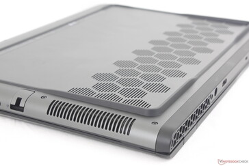 Geçen yılki m16 R1'in tüm bağlantı noktaları mini-DisplayPort hariç geri döndü. Port konumlandırması RJ-45 ile değişti ve ses jakı sol kenara taşındı, oysa m16 R1'deki portların çoğu rahatsız edici bir şekilde arka taraftaydı.