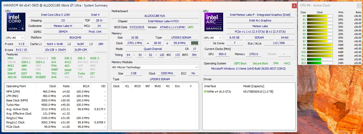| Alldocube iWork GT Ultra Intel Core Ultra 5 125H ⎘ Intel Arc 7-Core iGPU ⎘ 16 GB Bellek, 1024 GB SSD | Liste fiyatı: 799€ | 870 g | 9.89 mm | 13.00" 2560x1600 232 PPI IPS | |
