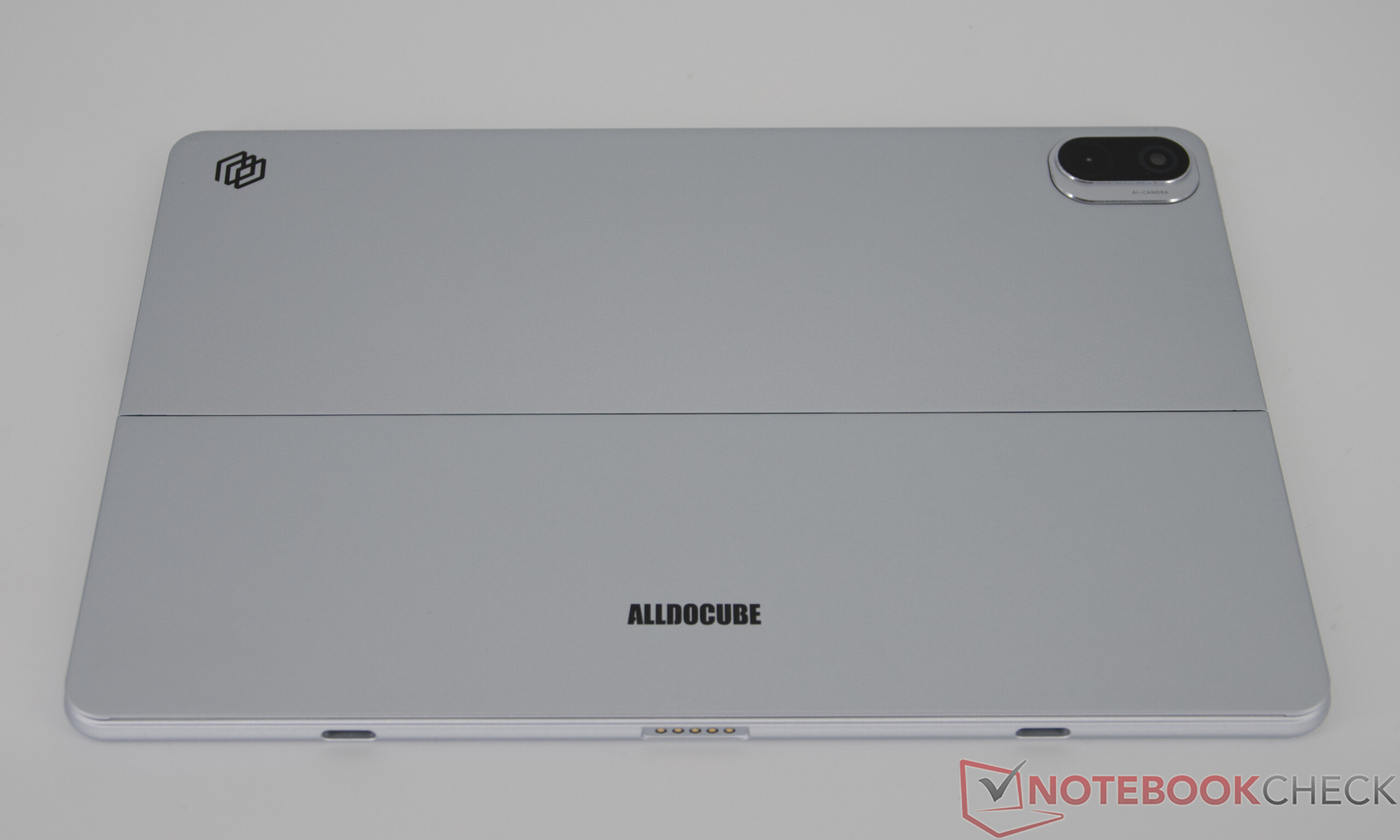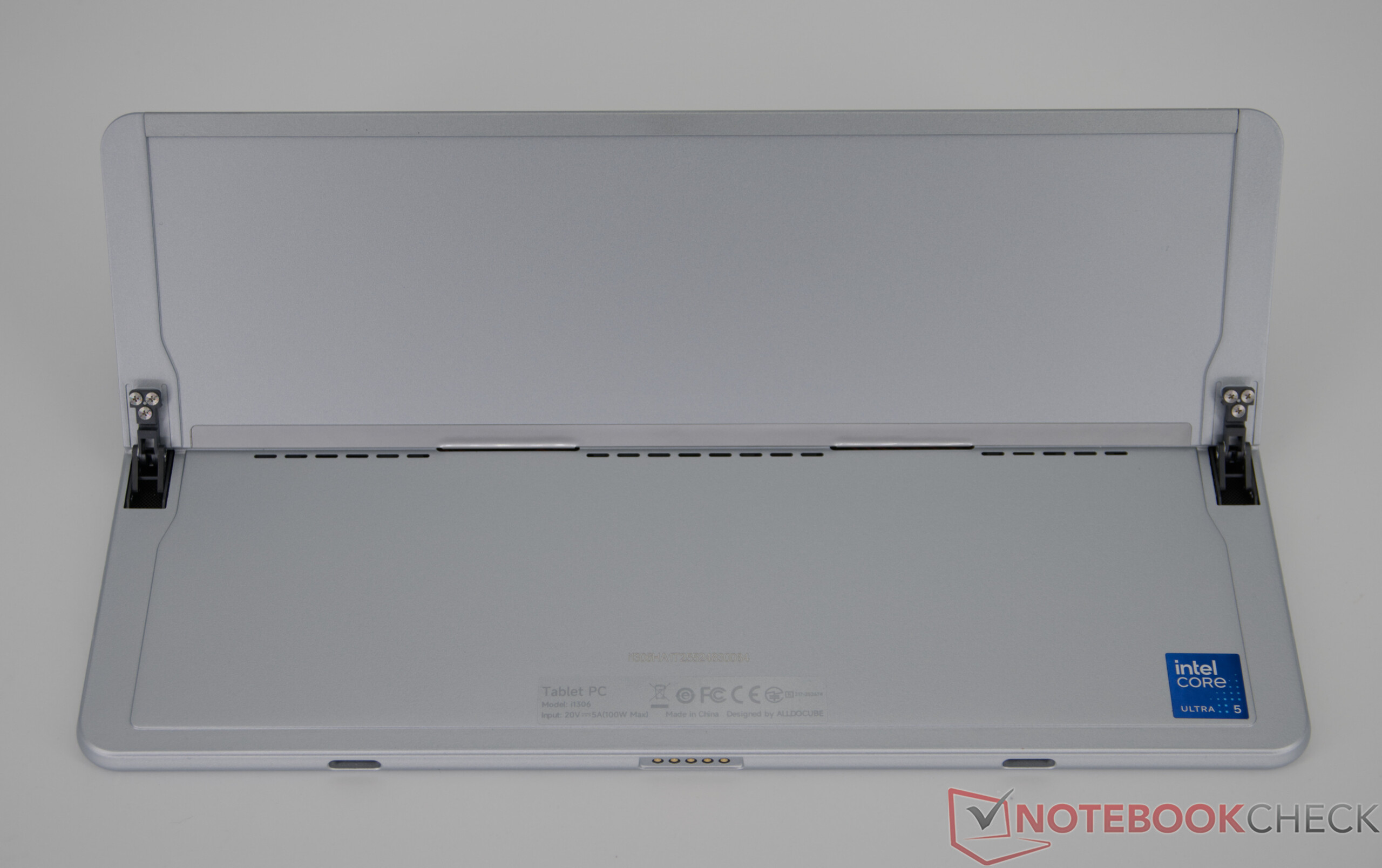 IWork GT Ultra entegre bir destek ayağı ile birlikte gelir. Alldocube, yüksek kaliteli bir genel izlenim yaratan metal bir kasaya güveniyor. Bununla birlikte, ağır baskı altında, belirli bir miktar esneklik vardır: dönerken hafif gıcırdama sesleri ve hafifçe eğilen bir ekran fark edilir, ancak günlük kullanımda olumsuz bir etkisi yoktur - normal dokunmatik girişlerde bile her şey sabit kalır. Arkadaki menteşeli stand sabittir ve bir Microsoft tableti anımsatır.