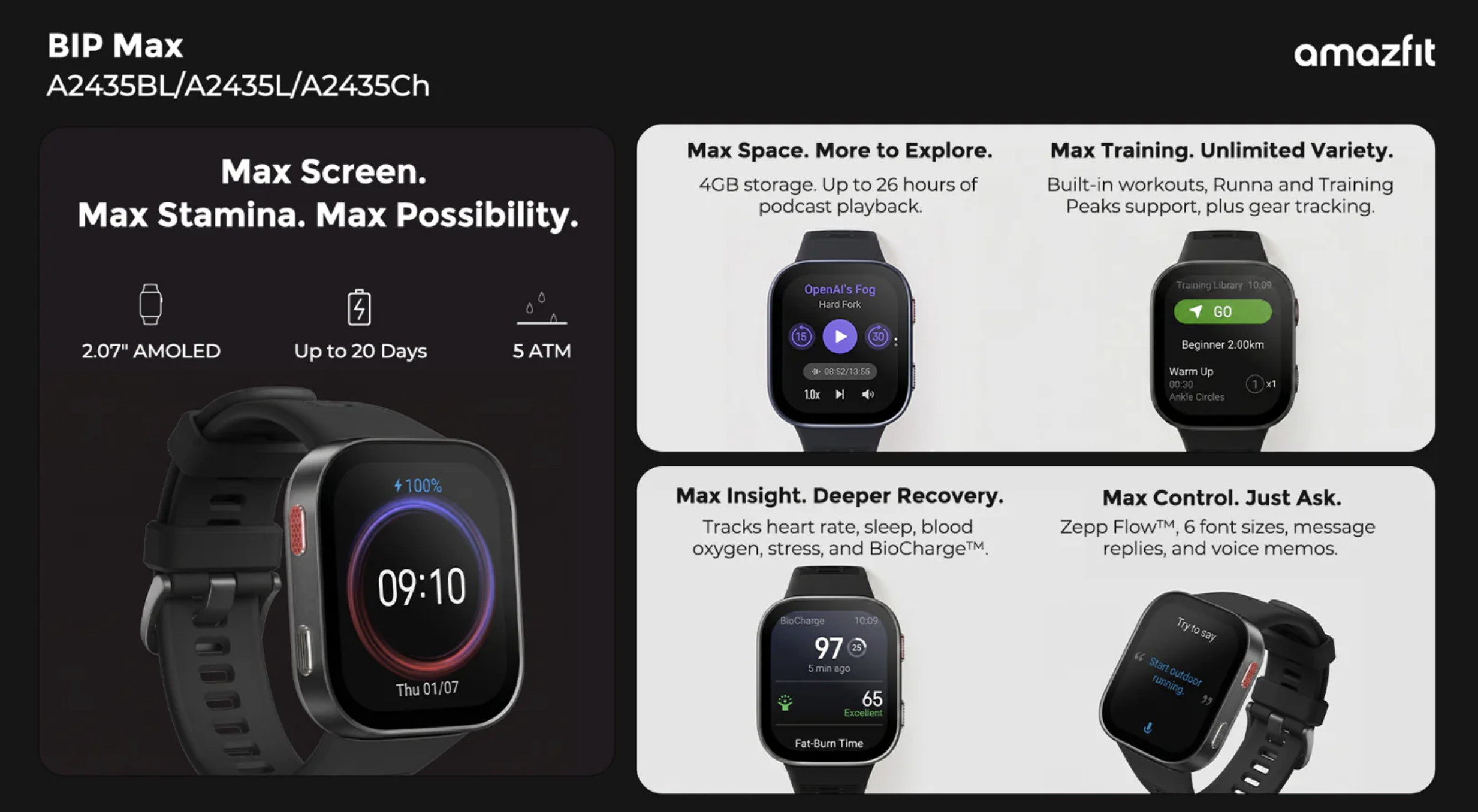 Özellikle perakendeci, Bip Max'i birkaç resmi görünümlü tanıtım görüntüsüyle listeledi. NCP Grubu, yukarıda ve aşağıda yer alan 'A2435' model numarasından bahsetmektedir ki bu aslında eski Bip 6. Bu nedenle, A2568 ve Bip Max'in tek ve aynı cihaz olduğundan şüpheleniyoruz.