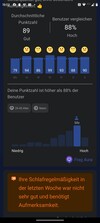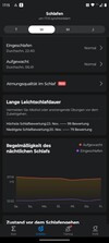 Amazfit'in uyku analizine verdiği önem, uygulama içindeki özel bir sekmede açıkça görülüyor. Uygulama, bir puan değeri olarak görselleştirilen ve bir pasta grafik ve renkle temsil edilen genel bir uyku puanı sağlar. Skor ayrıca "iyi" olarak etiketlenmek gibi kategorilere ayrılıyor.