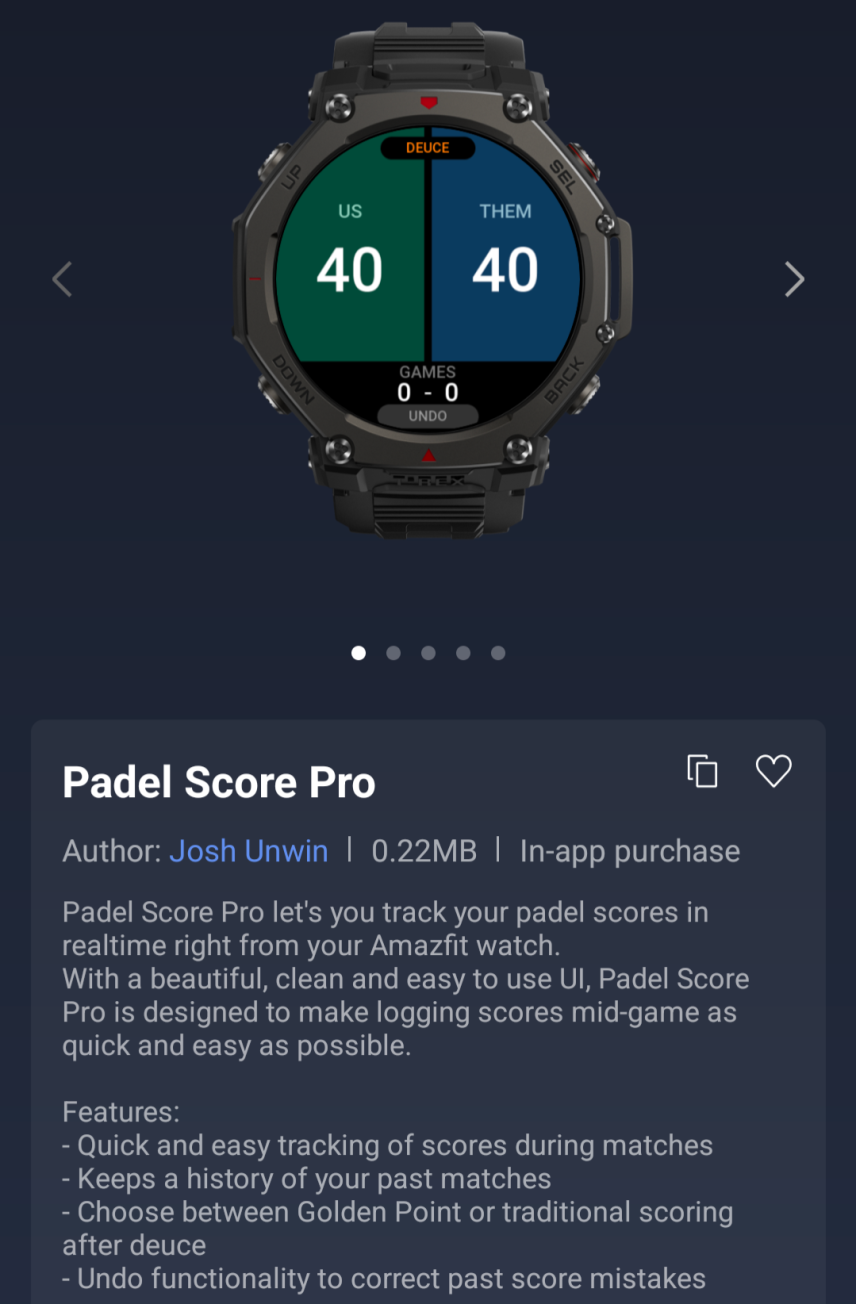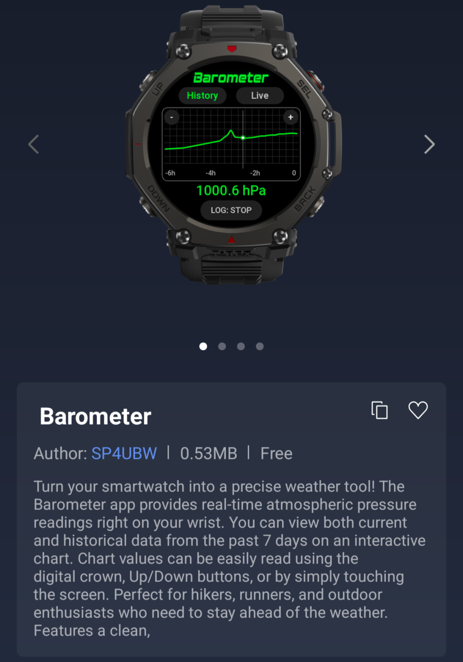 Zepp Health'in adresindeki son Discord gönderisine göreyeni bir WristSnap Mini Uygulaması artık Zepp App Store üzerinden kullanılabilir. Bu, bağlı akıllı telefonunuzda fotoğraf çekmeyi kolaylaştırmak için kullanılabilir. Kullanıcıların atmosferik basıncı gerçek zamanlı olarak kontrol etmelerine ve geçen hafta toplanan verileri görüntülemelerine olanak tanıyan yeni bir Barometre Mini Uygulaması bulunmaktadır. Son yeni Mini Uygulama ise Padel Score Pro; adından da anlaşılacağı üzere Amazfit akıllı saatinizde padel skorlarınızı takip edebilmeniz için tasarlandı. Bu son uygulamanın uygulama içi satın alımlar sunduğunu belirtmek gerekir.