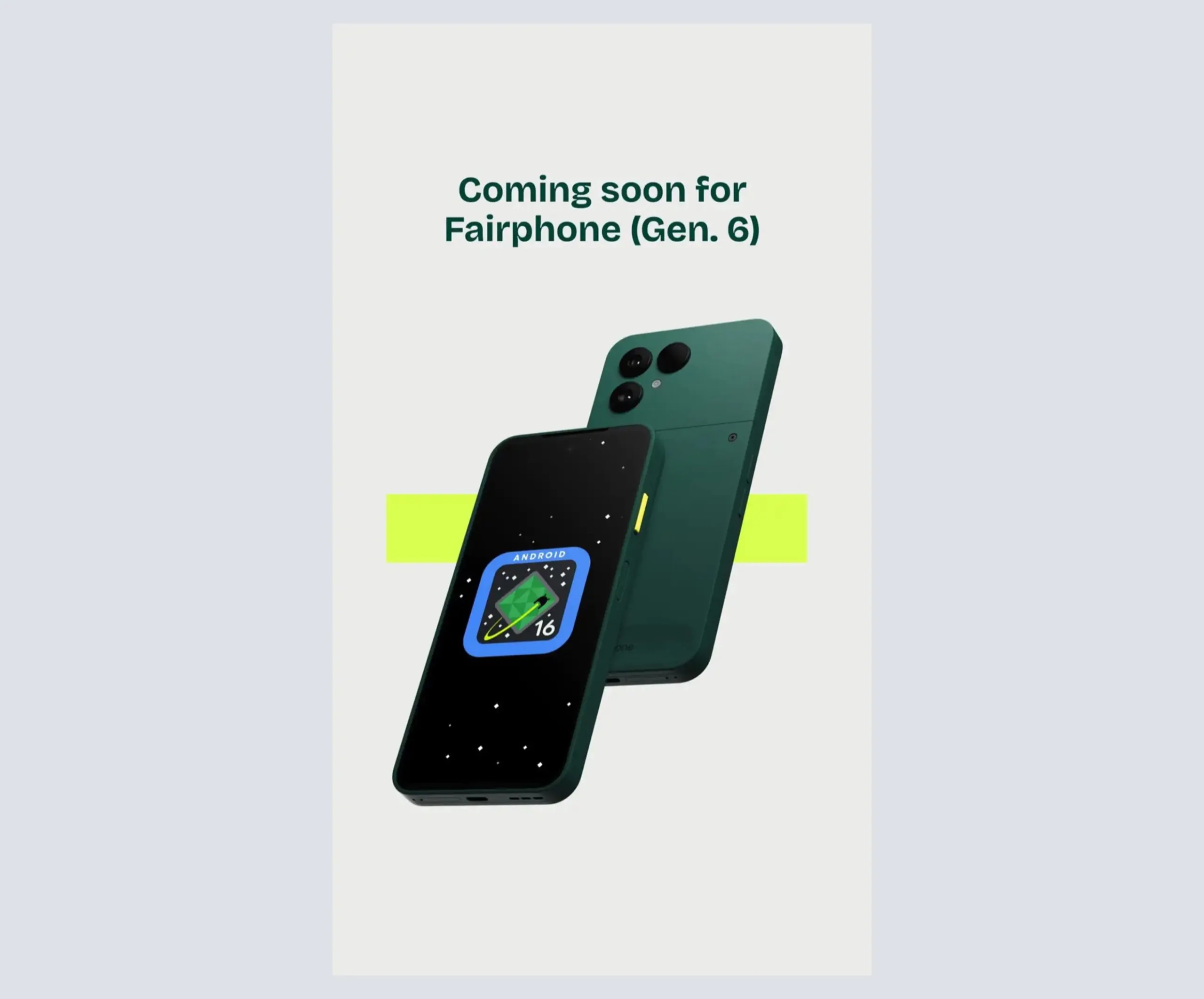 Fairphone 6, Haziran 2025'te piyasaya sürüldüğünde Android 16 o sırada mevcut olmasına rağmen Android 15 ile birlikte gönderilmişti. Sekiz aydan uzun bir süre sonra Fairphone, bir Instagram Hikayesi aracılığıyla cihazın nihayet ilk büyük Android güncellemesini "yakında" alacağını doğruladı.