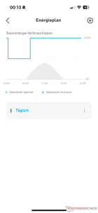 Bununla birlikte, seçenekler, olağan günlük ritme uygun olarak depolama sisteminden ev şebekesine ne zaman ve ne kadar elektriğin (varsa) otomatik olarak beslenmesi gerektiğine dair oldukça kesin bir sıra tanımlamak için kullanılabilir. Program Pazartesi'den Pazar'a kadar serbestçe yapılandırılabilir, böylece örneğin normal çalışma günleri ve hafta sonu farklı şekilde düzenlenebilir.