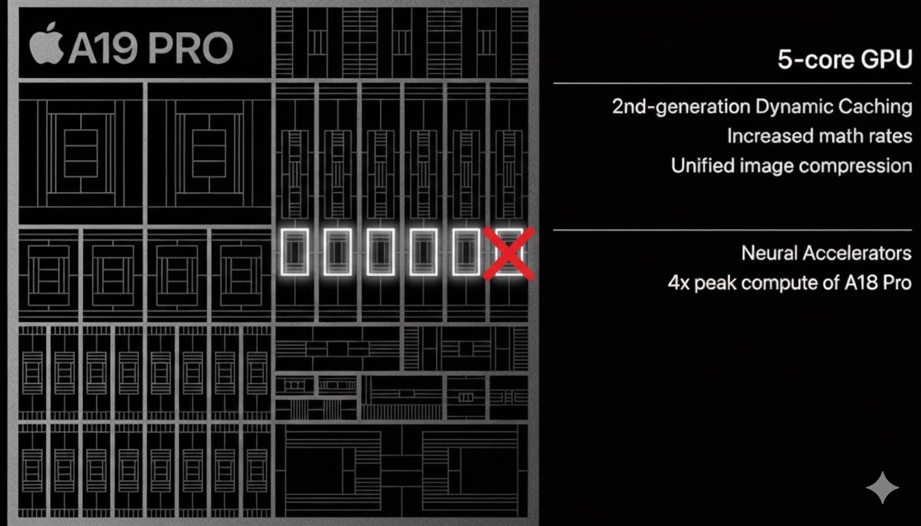 Daha yavaş A18 GPU sadece 1 çekirdek daha az değil; aynı zamanda daha eski görüntü motoru ve video kodlayıcı / kod çözücü ile yetinmek zorundadır.