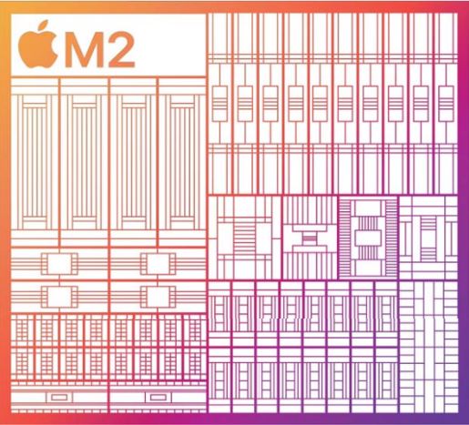 The new M2 SoC, eski M1 çipini temel alır ve geliştirilmiş 5 nm proseste üretilir (muhtemelen TSMC'de N5P). Artan sayıda transistöre (şu anda 16 milyara karşı 20) ek olarak, 8K ve ProRes dosyalarını (M1 Pro, M1 Max ve M1 Ultra için de kullanılır) destekleyen yeni bir Medya Motorunun yanı sıra daha hızlı Neural Motor, artık 8 veya 10 çekirdekli daha güçlü ekran kartları elde edersiniz. LPDDR4x'ten LPDDR5x RAM'e geçiş, Apple'ın maksimum bellek bant genişliğini 68,25 GB/sn'den 100 GB/sn'ye yükseltmesini de sağladı ve artık 24 GB'a kadar birleşik belleğe sahip olabilirsiniz. Bellek arayüzünün kendisi hala 128-bit genişliğinde, daha büyük M1 Pro yongaları 256-bit ve M1 Max, hatta 512-bit arayüzleri kullanıyor.