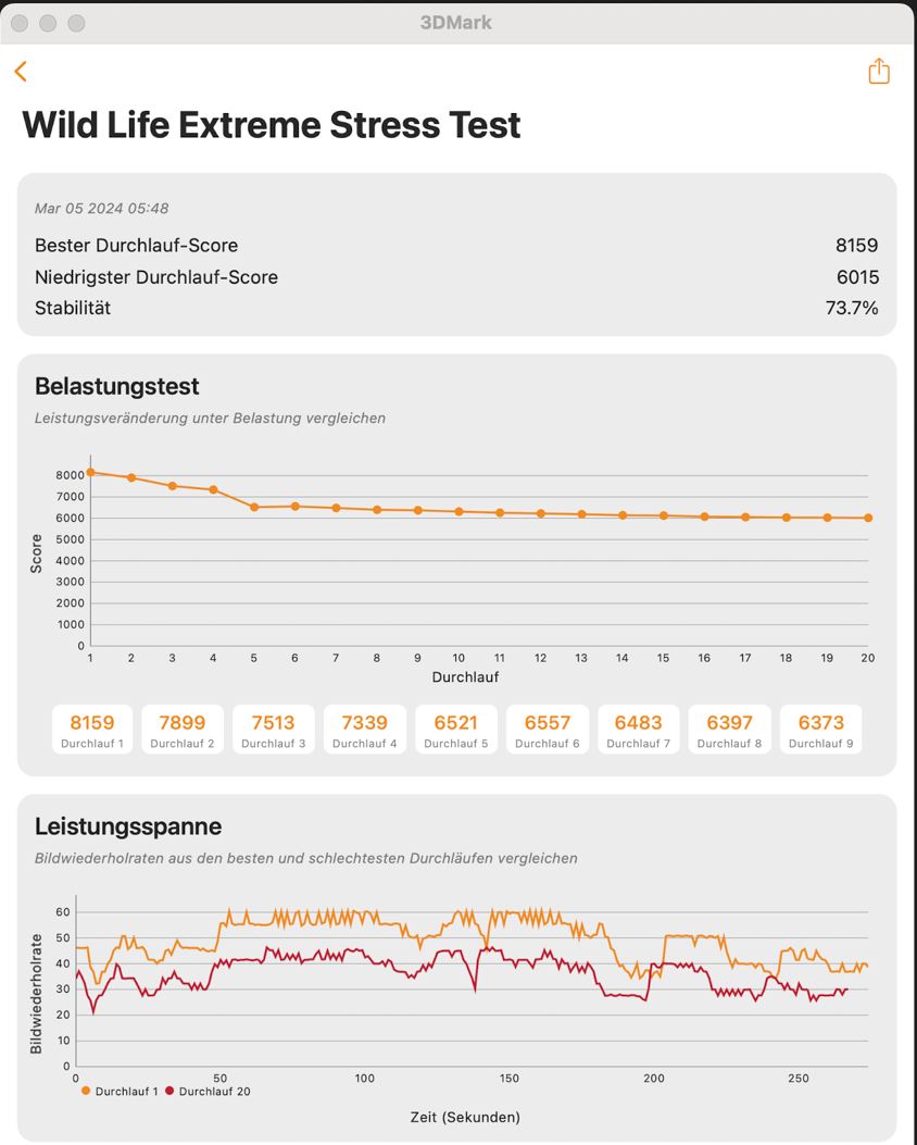 Pasif soğutması sürekli yük altında dizüstü bilgisayarın performansının biraz düşmesine neden olsa da (yaklaşık %20), bu özellikle mevcut Intel modelleri için normdur (en azından çok çekirdekli performans söz konusu olduğunda) - aktif soğutmayla bile. Öte yandan, mükemmel tek çekirdek performansı sabit kalıyor ve bu açıdan Apple, AMD Ryzen-8000 işlemciler ve Intel'in Meteor Lake çipleri gibi rakiplerini geride bırakabiliyor. Üstelik bunların hepsi pasif soğutmalı bir cihazın içinde. Şu anda rahatsız edici fan sesleri olmadan bu kadar güçlü performans sunan karşılaştırılabilir bir Windows alternatifi yok.