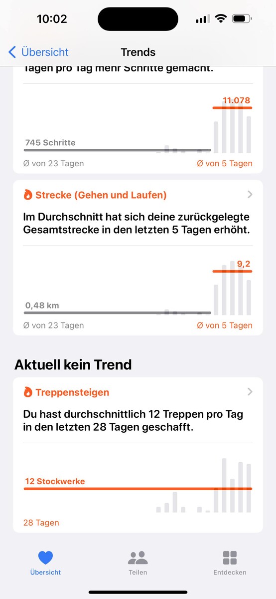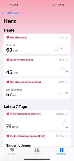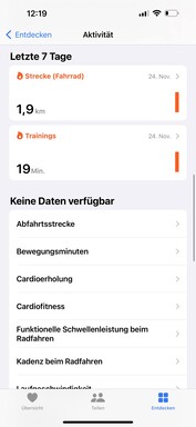 Yazılım, her hafta için ortalama değerler üretiyor ve ortam gürültüsü seviyeleri, merdiven çıkma veya aktivite enerjisi gibi eğilimleri gösteriyor. Sağlık uygulamasını tamamlayan Apple, aktiviteleri, ödülleri, aktivite trendlerini ve antrenmana genel bakışı gösteren Fitness uygulamasını sunmaktadır.