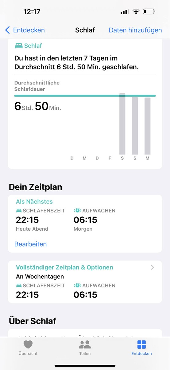 Uyku sırasında takılıyken, akıllı saat hem yatakta geçirilen süreyi hem de gerçek uyku süresini ölçerek uykuyu REM, çekirdek ve derin aşamalara ayırır. Yazılım, bu evreleri bir zaman çizelgesinde renkli olarak göstererek her evrede geçirilen süreyi gösteriyor. Kullanıcılar tek tek günler, haftalar veya aylar için değerlerin yanı sıra son yedi günün ortalamasını da görüntüleyebiliyor.