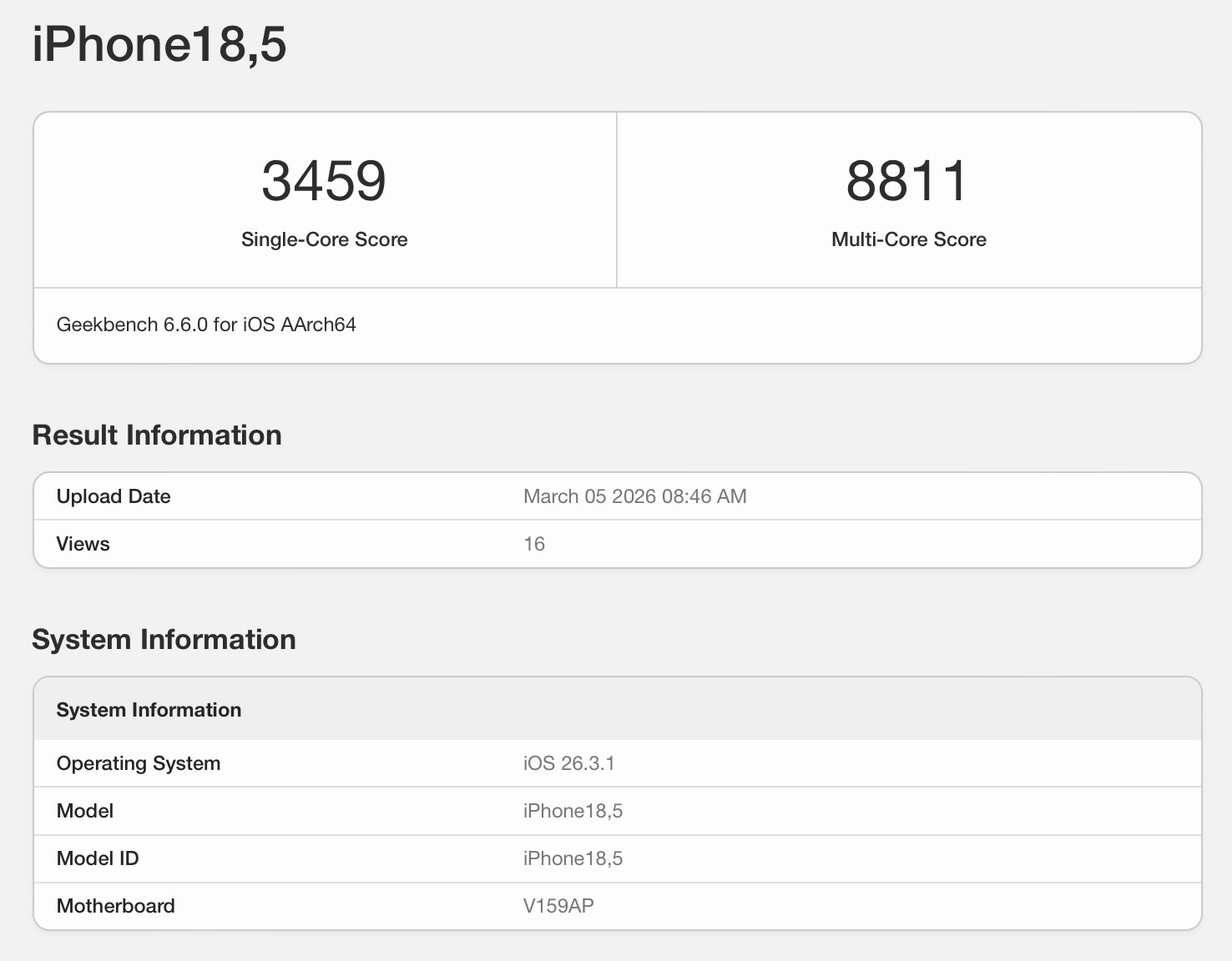 Sızdırılan Geekbench sonuçları da benzer bir hikaye anlatıyor: iPhone 17e tek ve çok çekirdekli testlerde sırasıyla 3.459 ve 8.811 puan alıyor. Referans olarak, standart iPhone 17 aynı testlerde 3.627 ve 9.249 puan alarak iki akıllı telefon arasındaki ham performans farkını sadece %4-5 civarında yapıyor.