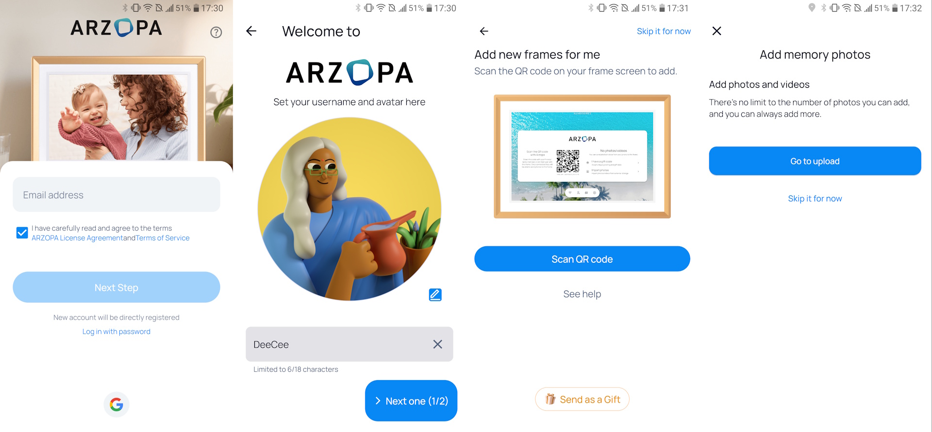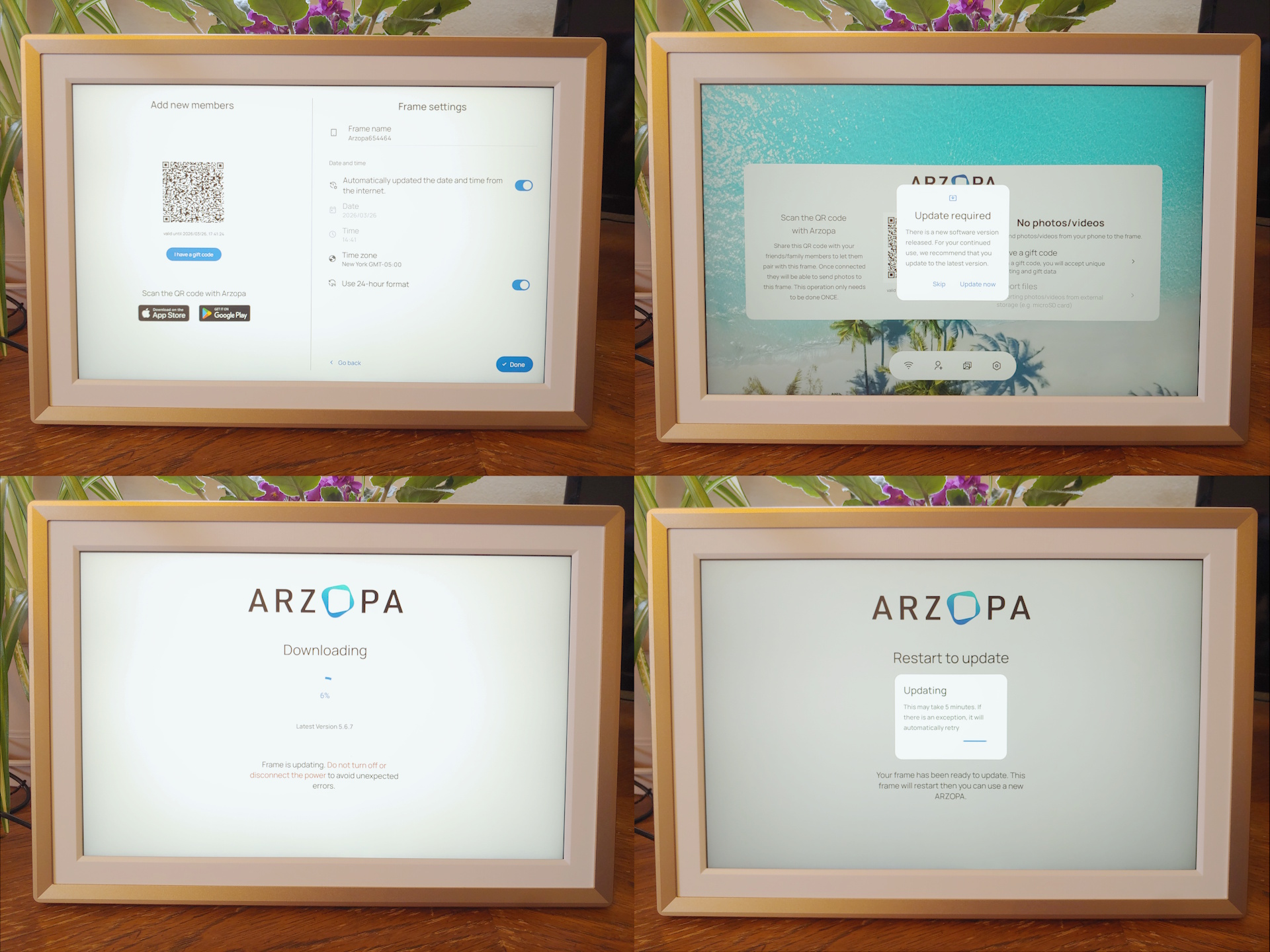 Yazılımın kurulumu kolaydır ve fotoğraf eklemek sadece saniyeler alır. Arzopa çerçevesine erişim arkadaşlarınızla ve ailenizle paylaşılabilir ve herkesin uygulama aracılığıyla uzaktan fotoğraf yüklemesine olanak tanır. Uygulama ayrıca alıcıların hediye etmeden önce bir kutsama ve fotoğraf yüklemesine olanak tanıyor ve sahipler ek etkinlik fotoğraflarını içe aktarmak için hediye kodları ekleyebiliyor.