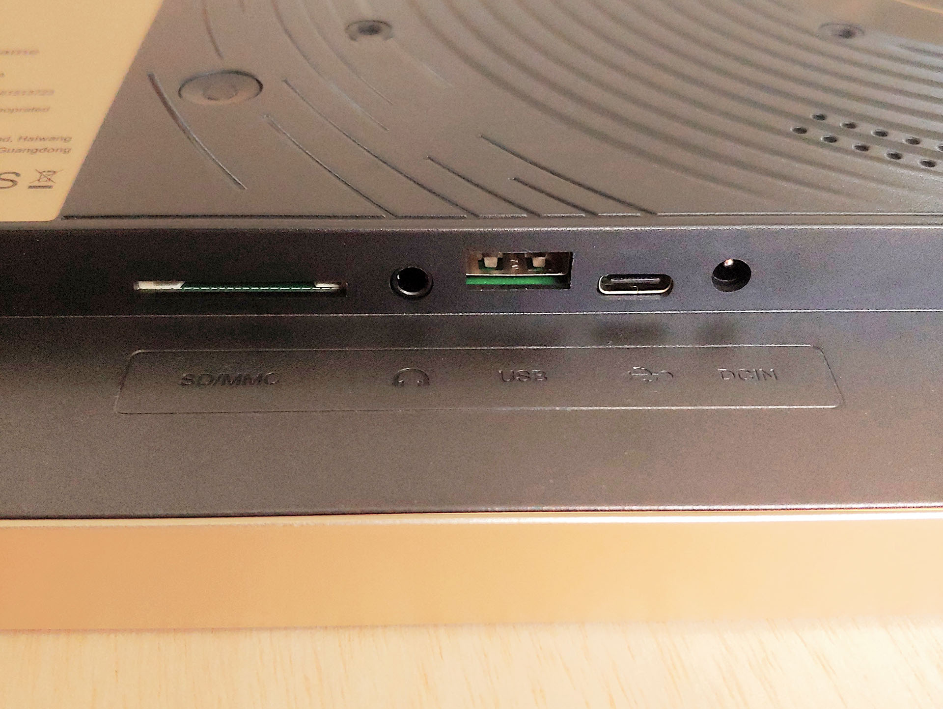 Güç, USB-A, USB-C, SD kart yuvası ve 3,5 mm kulaklık girişi dahil olmak üzere tüm bağlantı noktaları arka taraftadır. Güç düğmesi yok, bu yüzden fişe taktığınızda açılıyor ve kapatma ya da uyku moduna alma işlemleri menü üzerinden gerçekleştiriliyor.