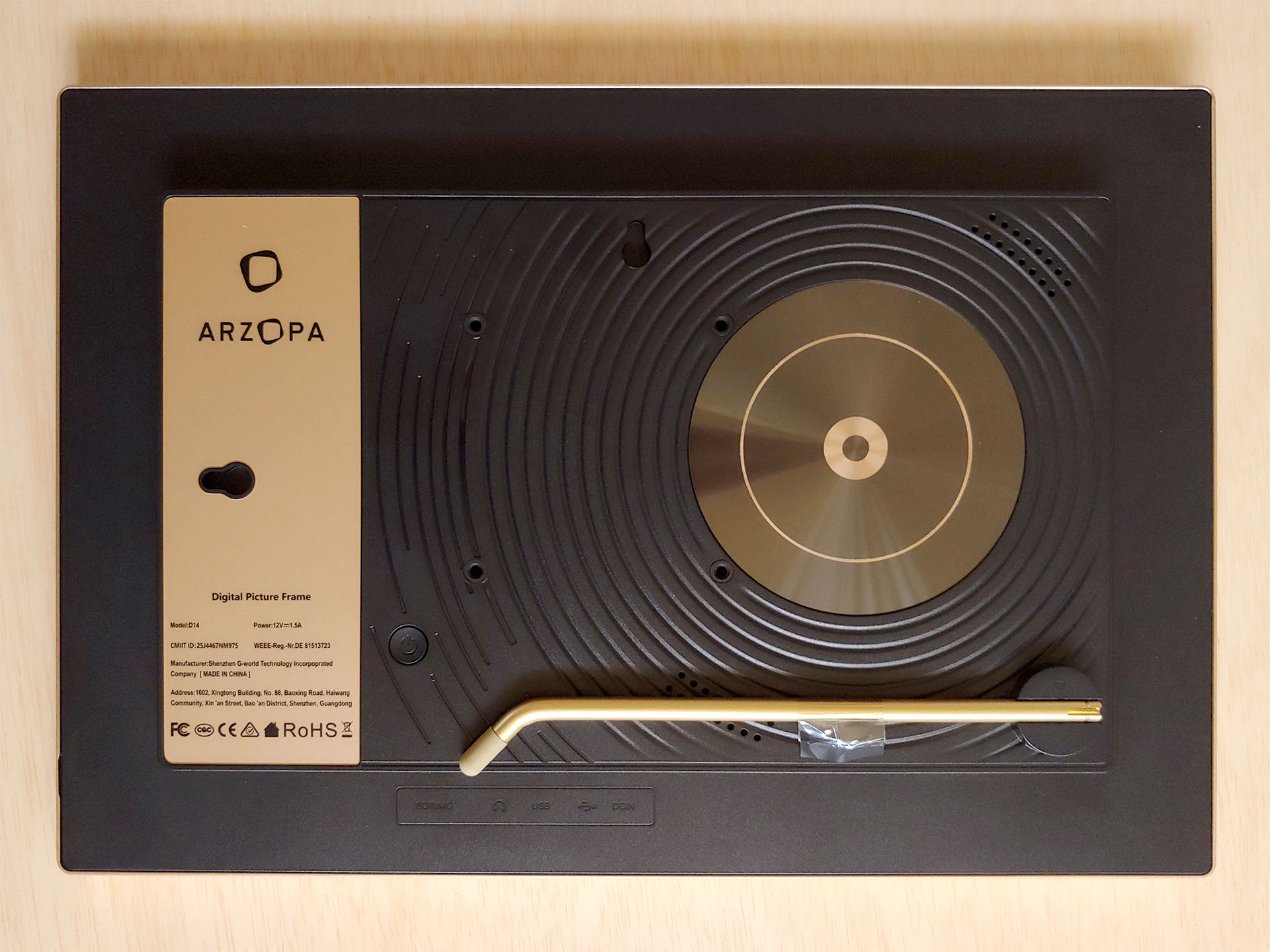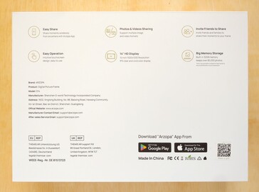 14 inçlik Arzopa bir fotoğraf çerçevesine benziyor ve iyi bir eksen dışı görüntüleme ve iyi bastırılmış yansımalar sunan mat bir LCD dokunmatik ekranla birlikte geliyor. Metal standı kullanarak bir masanın üzerine oturabilir veya duvara monte edilebilir.
