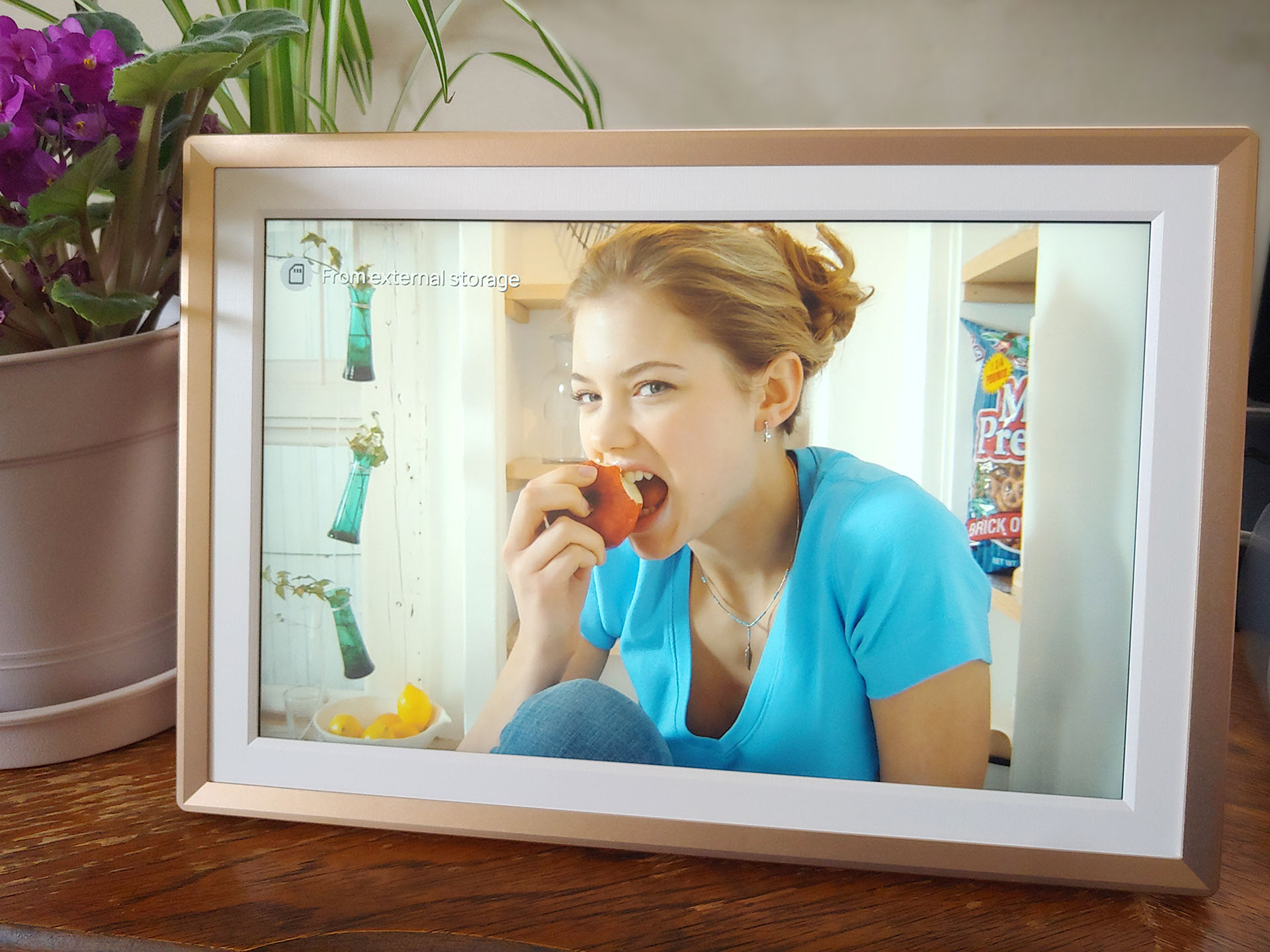 Yine de, baskı yapmadan fotoğrafların keyfini çıkarmanın kolay ve maliyet tasarrufu sağlayan bir yoludur. Çerçeveler, hediye etmek için kutsamalar ve resimlerle önceden yüklenebilir ve işletmeler bunları kafe tabelaları veya menüler için yeniden kullanabilir.