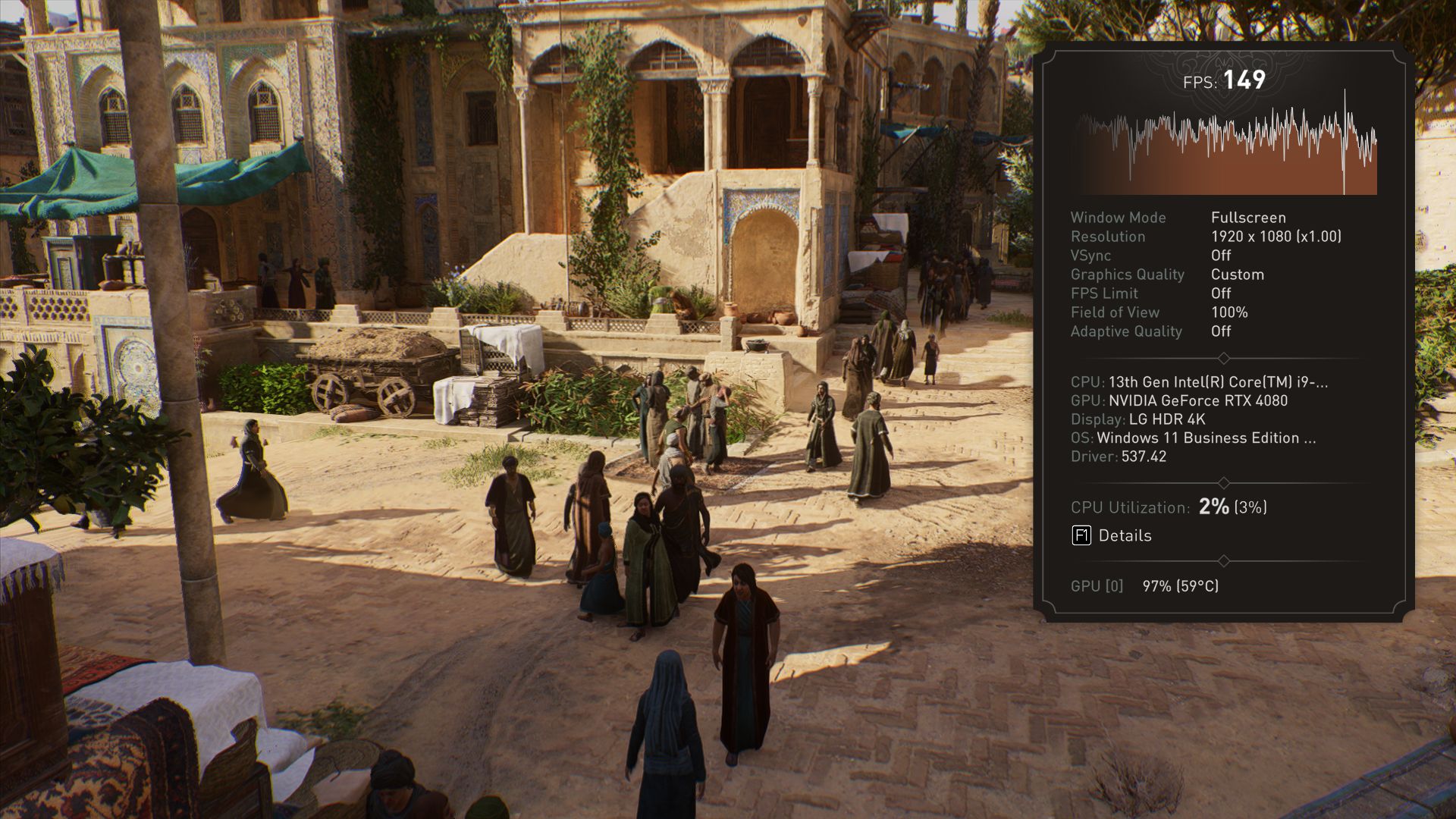 Aynı şekilde QHD'de Mirage'ın keyfini çıkarmak için mutlak bir üst düzey GPU'ya ihtiyacınız olmayacak. A GeForce RTX 4050 teorik olarak oyunu 1440p ve Ultra High ön ayarında çalıştıracak kadar güçlüdür, ancak 6 GB VRAM sınırlayıcı bir faktördür.