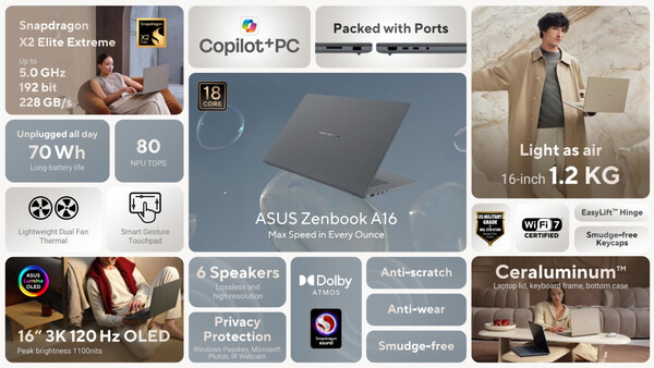 Bu hafta başında, Asus piyasaya sürdü zenbook A16'yı ABD'de satışa sundu. Üst düzey performansı ve hafif form faktörü ile beğeni toplayan Zenbook A16, Qualcomm Snapdragon X2 destekli mevcut Zenbook A16'nın alternatifi olarak hizmet veriyor Zenbook S16 serisi (Amazon'da şu anda 1.299 dolar). Birçok kişi hızlıca eleştirdi Asus'un kararı zenbook A16 fiyatında artış piyasaya sürülmesinden kısa bir süre sonra 100 dolar.