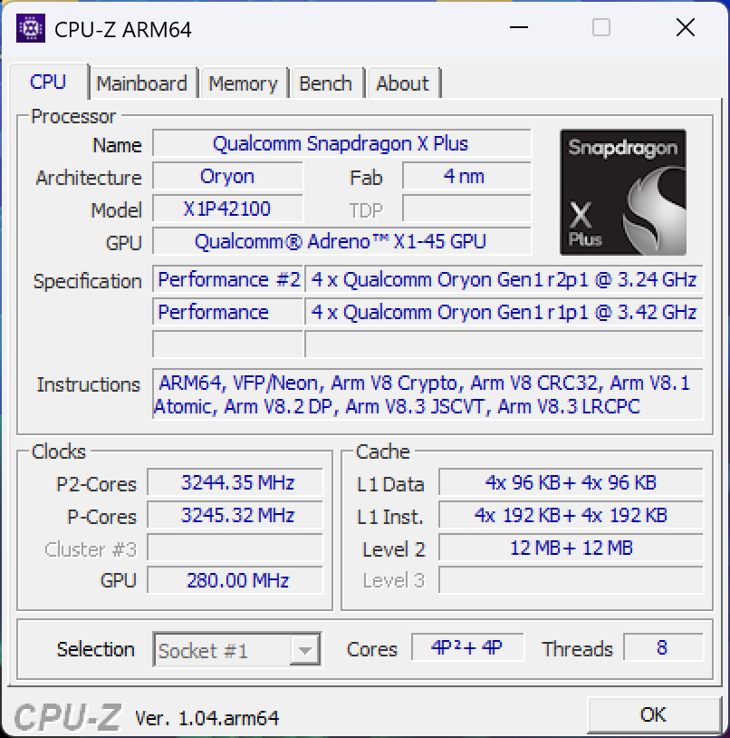 | 80.7 % | v8 | 08/2024 | Microsoft Surface Pro Copilot+ SD X Plus X1P-64-100, Adreno X1-85 3.8 TFLOPS | 872 g | 9.3 mm | 13.00" | 2880x1920 | |