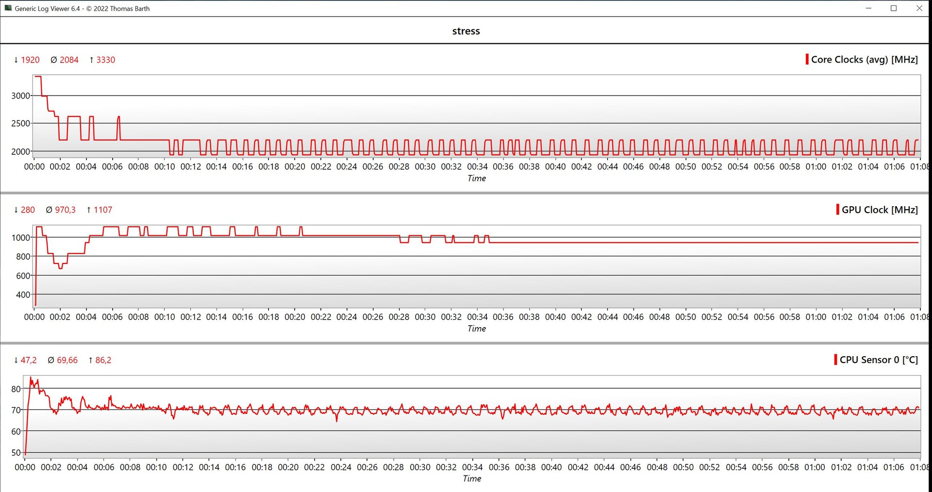 PZ13, özellikle boş modda çok az güce ihtiyaç duyuyor - maksimum 6,1 watt'lık bir değer kaydettik. Bununla birlikte, Surface Pro (çok daha parlak 120 Hz OLED'e sahip) ile karşılaştırıldığında, bunlar hiçbir şekilde rekor değerler değildir. Yük altında, kısa bir süre 60 watt'a kadar ulaştı, bu da küçük Snapdragon X Plus göz önüne alındığında oldukça fazla. Stres testinin devamında tüketimi 30-40 watt arasında dalgalandı. Bu nedenle birlikte verilen 65 watt'lık güç kaynağı yeterli boyuttadır. Yine de 0,94 watt'lık bekleme tüketimi çok yüksektir.